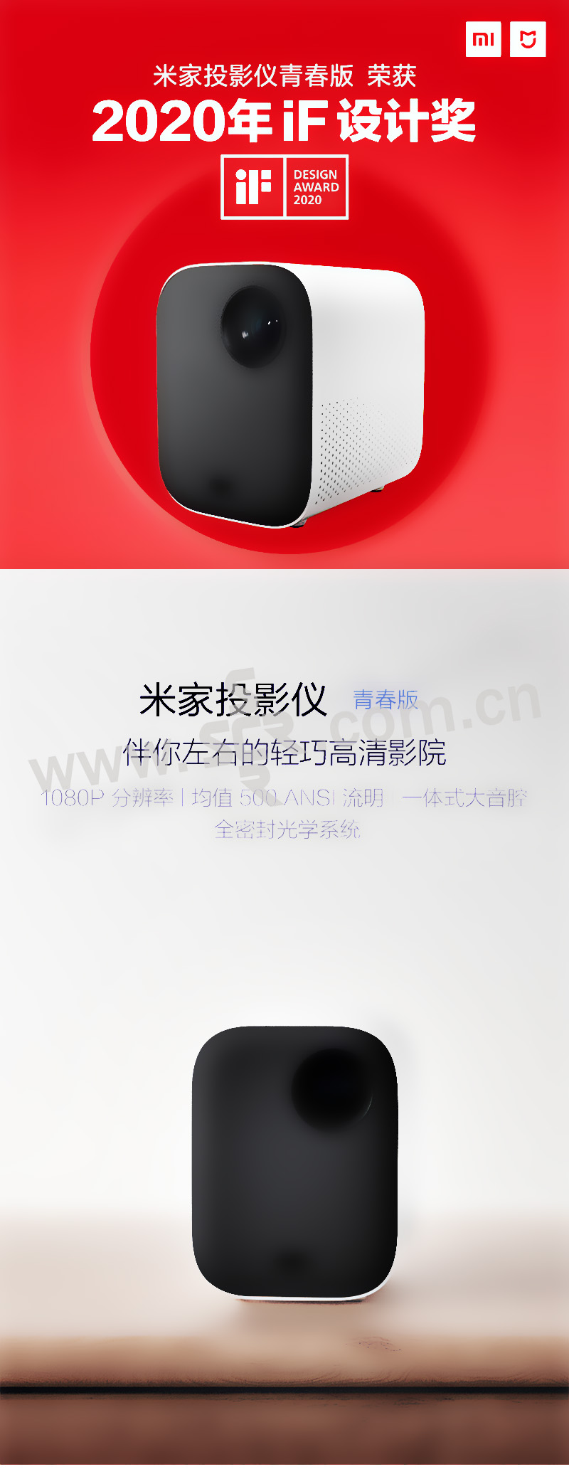 MI/小米 投影仪 米家青春版 1080P全高清 小米电视机相同内容源 开机即对焦 1台