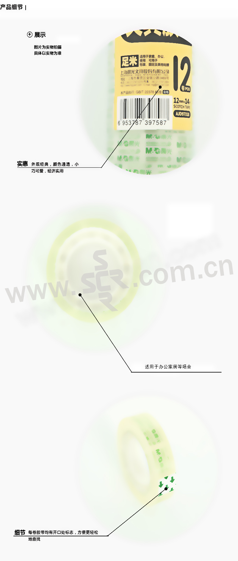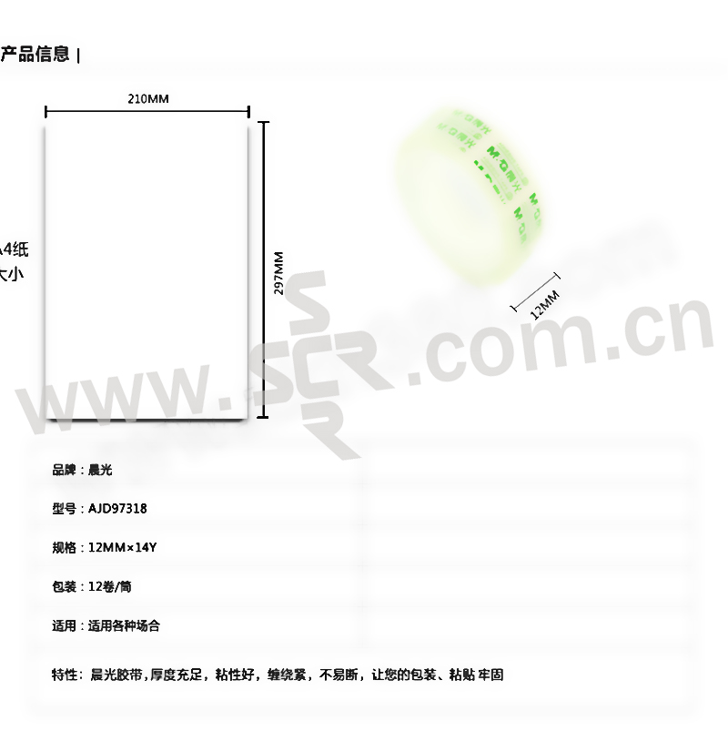 M&G/晨光 文具胶带 AJD97318 14yd×12mm 透明 12卷 1筒
