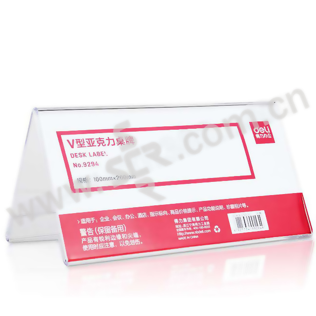 DELI/得力 透明V型亚克力桌牌 9294 200×100mm 1个