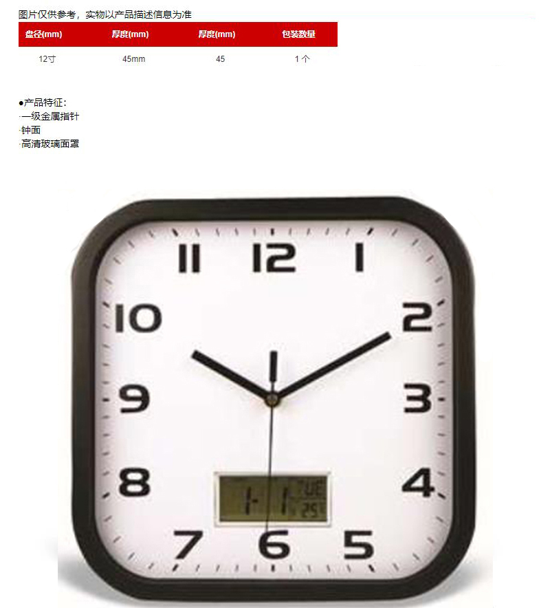 ·一级金属指针 ·PVC钟面 ·高清玻璃面罩