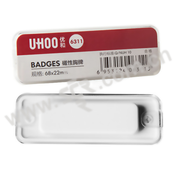 UHOO/优和 6311 小号弓形磁性胸牌 6311 横式 68×22mm 白底透明盖 1个