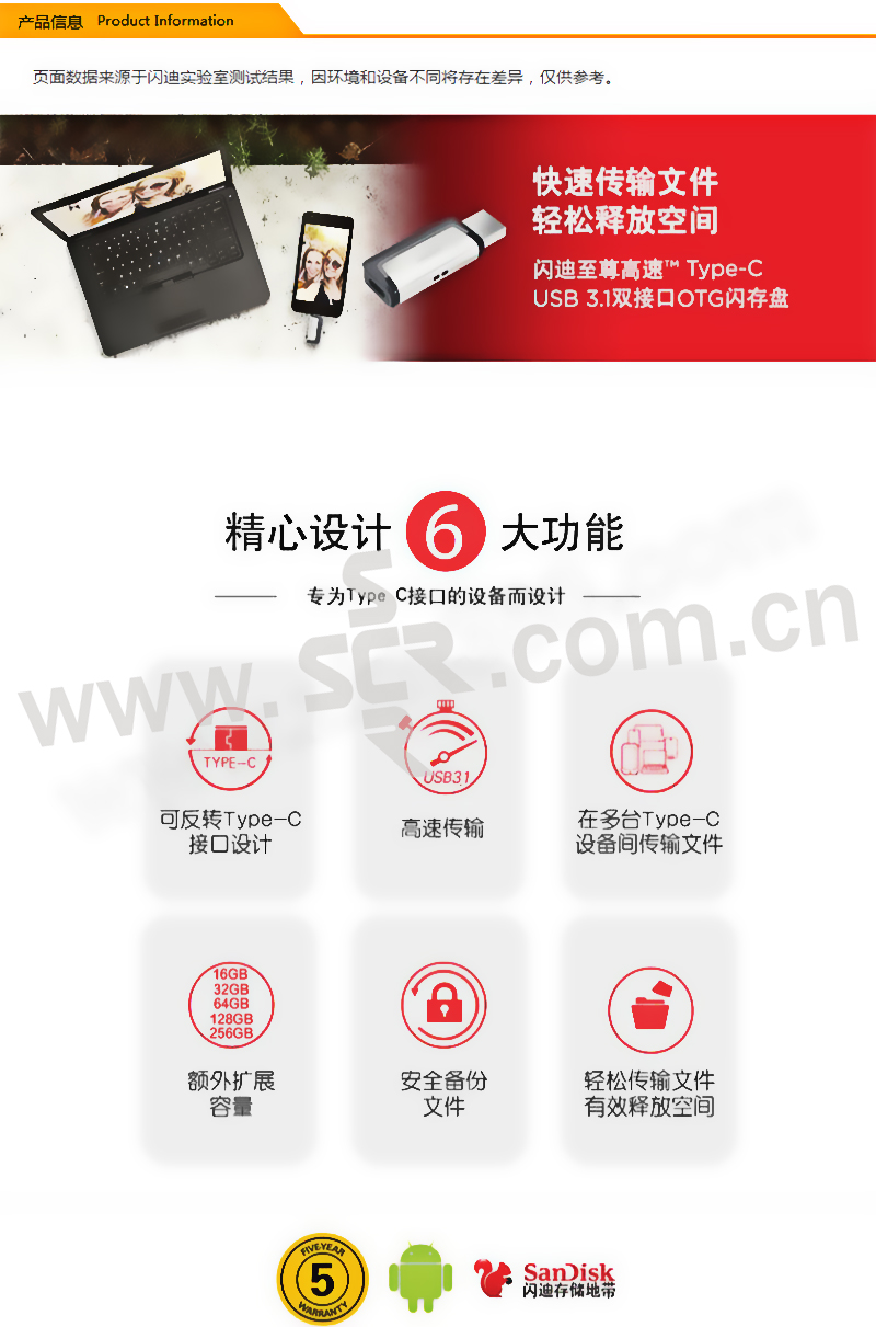 SANDISK/闪迪 手机U盘 DDC2 256GB Type-C USB3.1 至尊高速版 读速150MB/s 1个