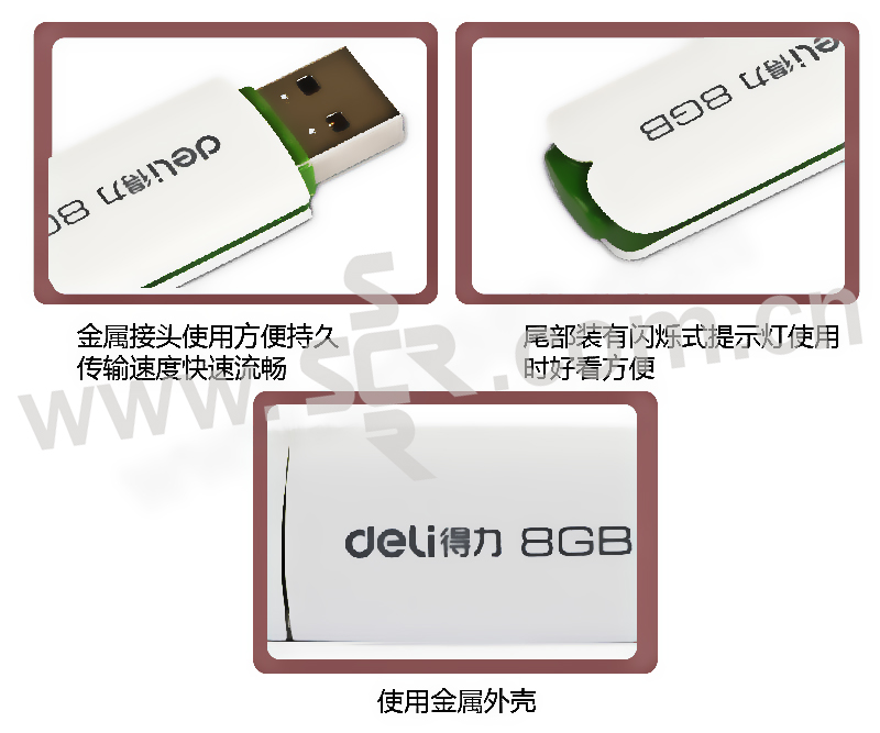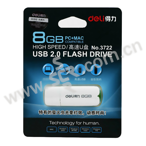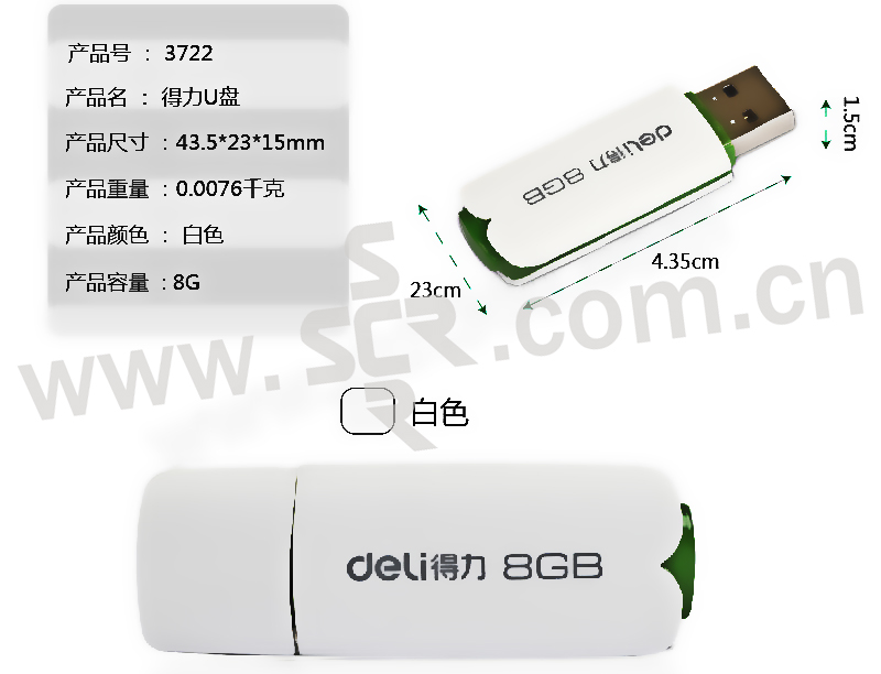 DELI/得力 高速U盘 3722 8G USB2.0 白色 1只
