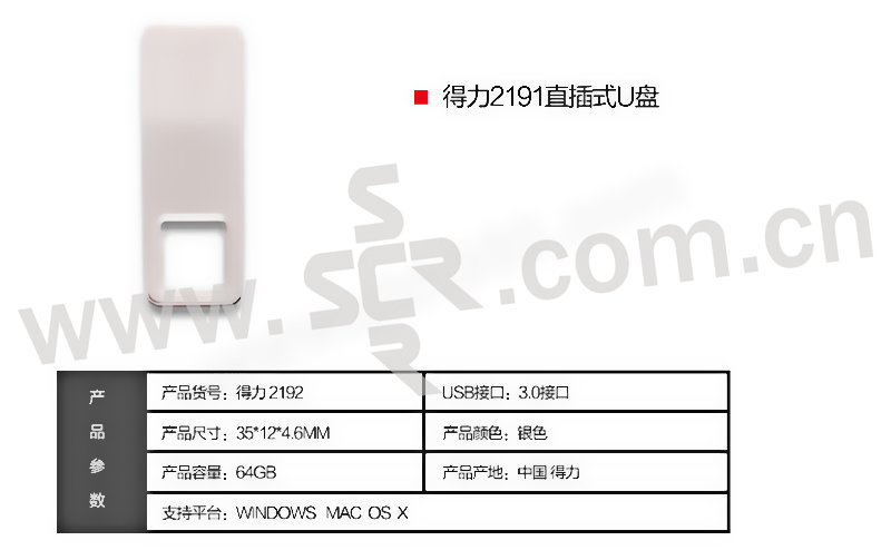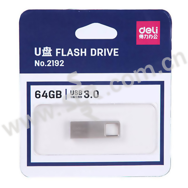 DELI/得力 直插式U盘 2192 64G USB3.0 银色 1只