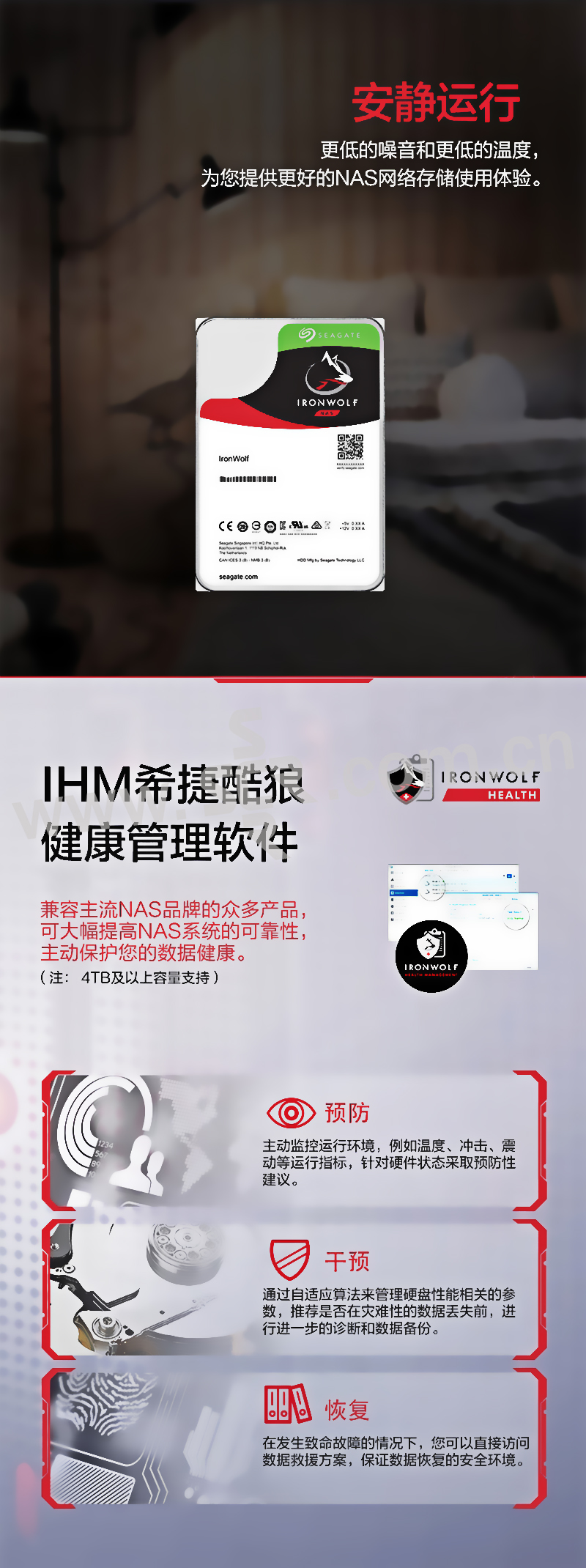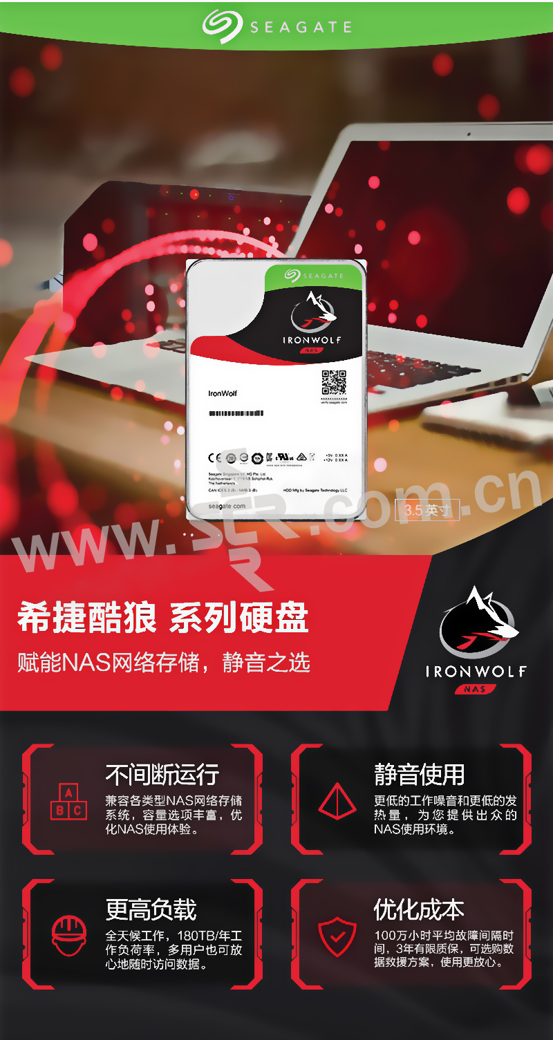 SEAGATE/希捷 酷狼系列网络存储(NAS)硬盘 ST14000VN0008 14TB SATA 7200RPM 256MB 1个