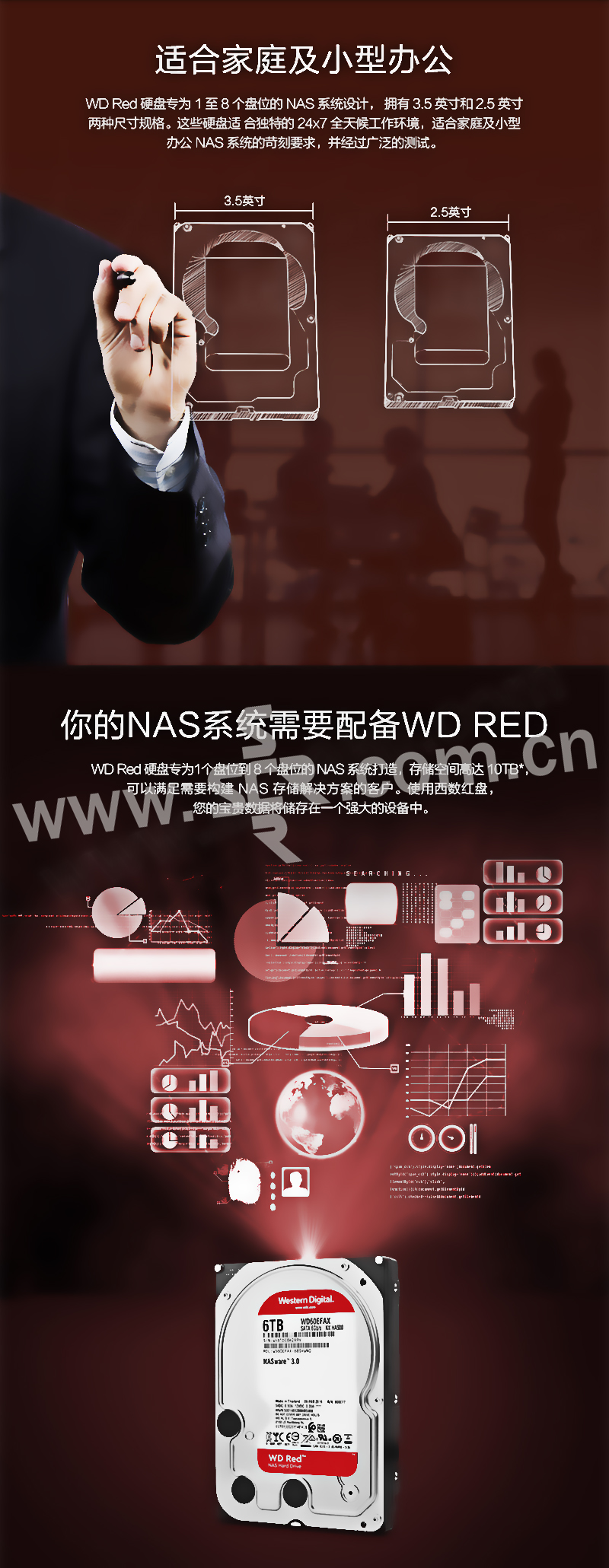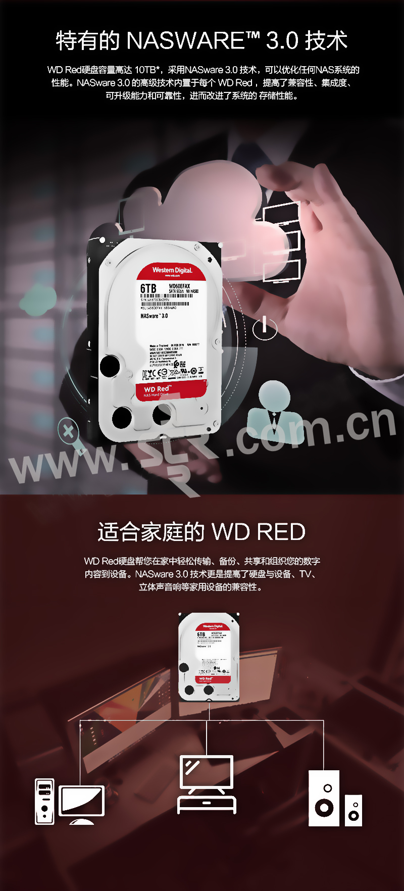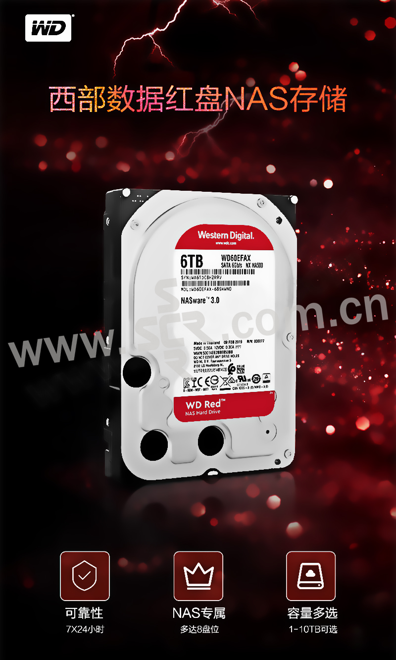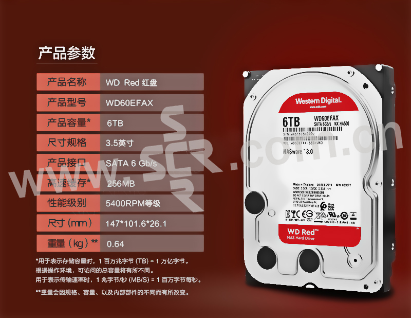 WD/西部数据 网络储存(NAS)硬盘 WD60EFAX 6TB SATA 6GB/s 256MB 红盘 1个