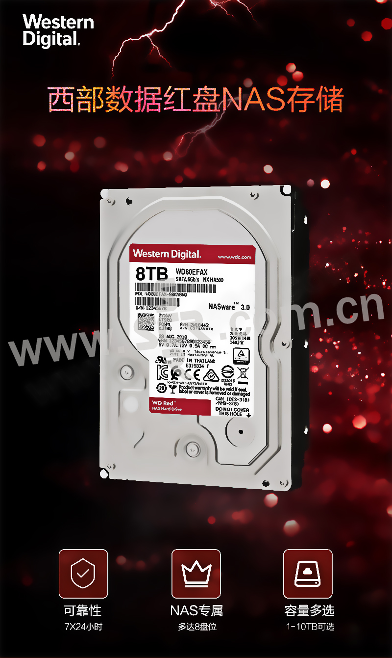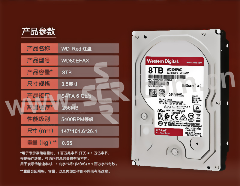 WD/西部数据 网络储存(NAS)硬盘 WD80EFAX 8TB SATA 6GB/s 256MB 红盘 1个