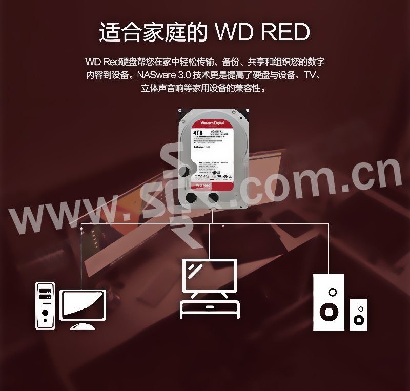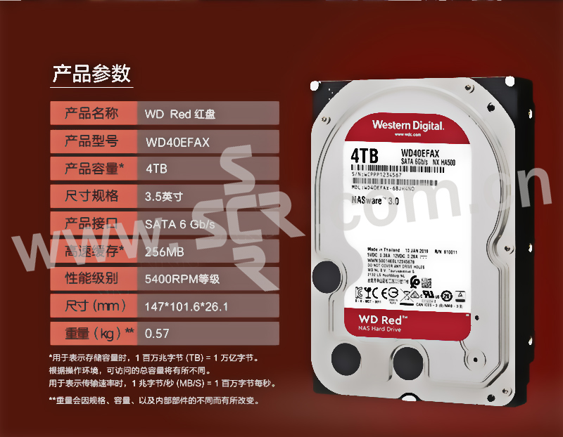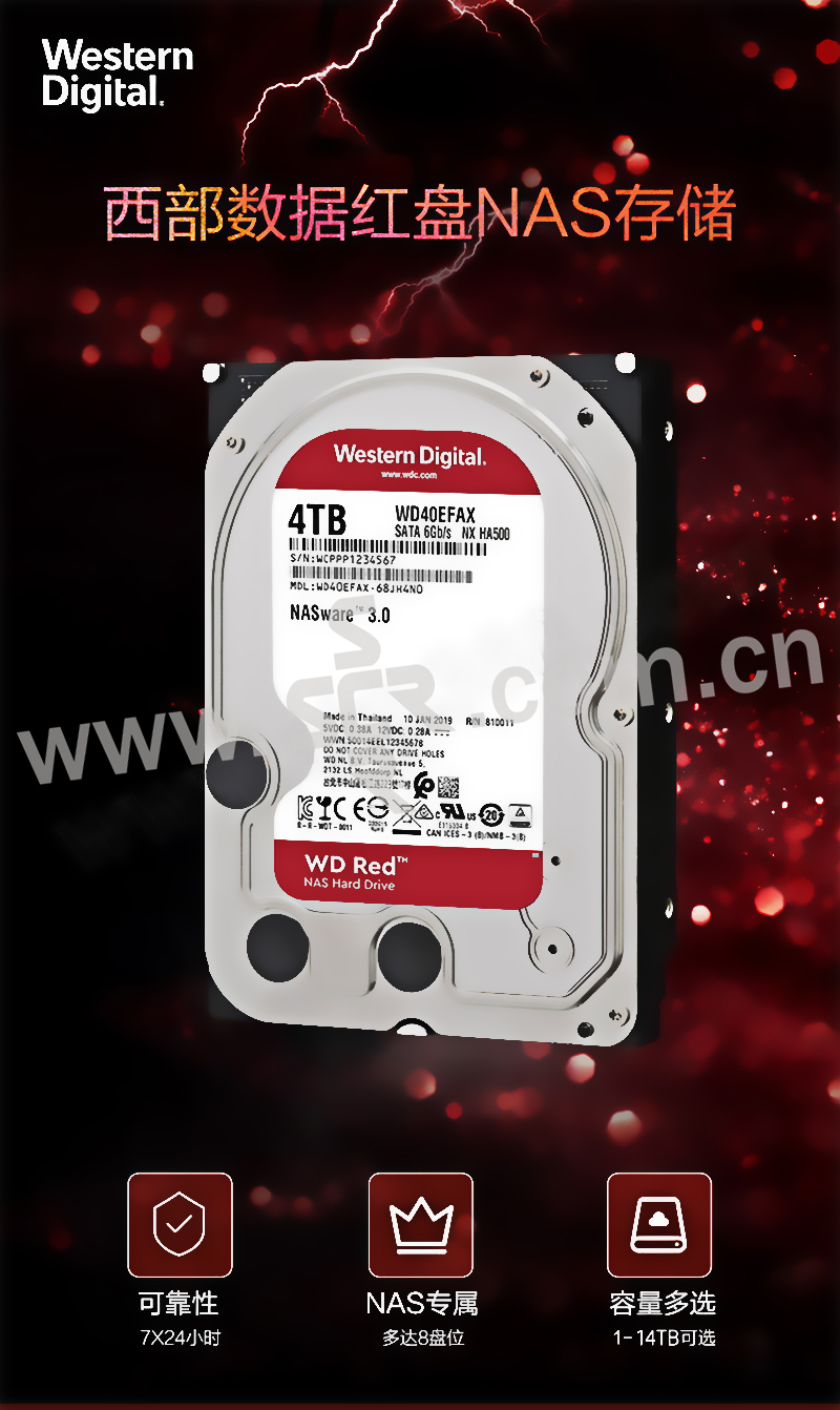 WD/西部数据 网络储存(NAS)硬盘 WD40EFAX 红盘 4TB SATA 6GB/s 256MB 1个