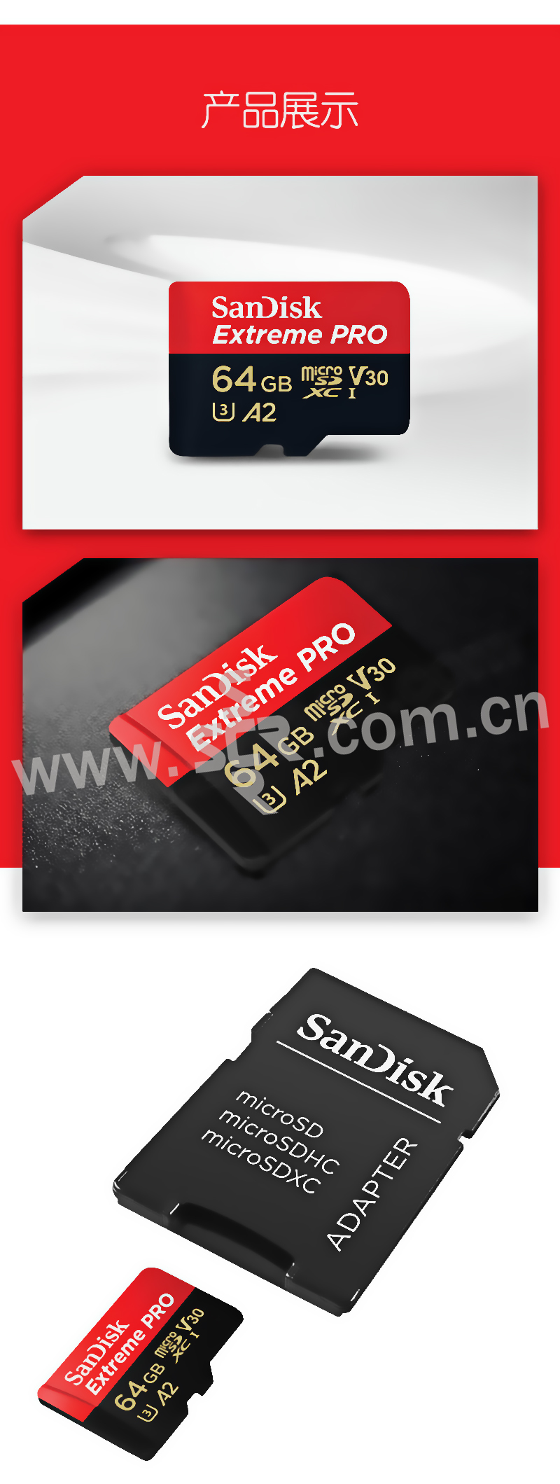 SANDISK/闪迪 TF(MicroSD)存储卡 U3 C10 A2 V30 4K 64G 读速170MB/s 写速90MB/s 1个