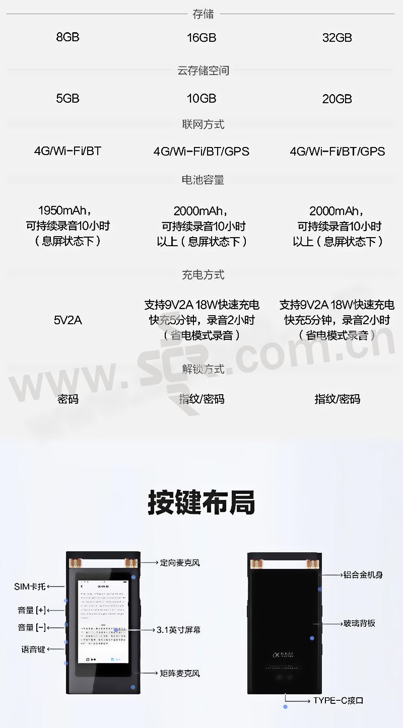 IFLYTEK/科大讯飞 智能录音笔 SR501 16GB 星空灰 实时录音转文字中英翻译 高清降噪触屏 1个
