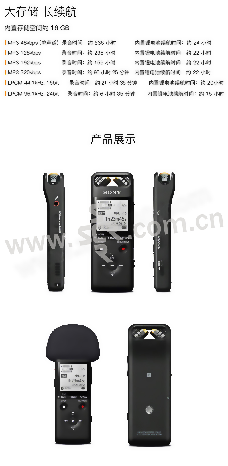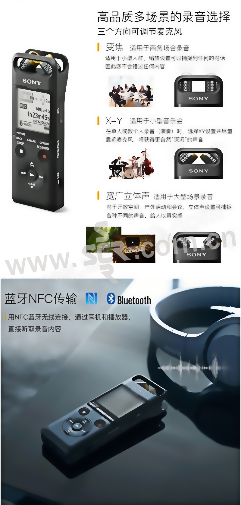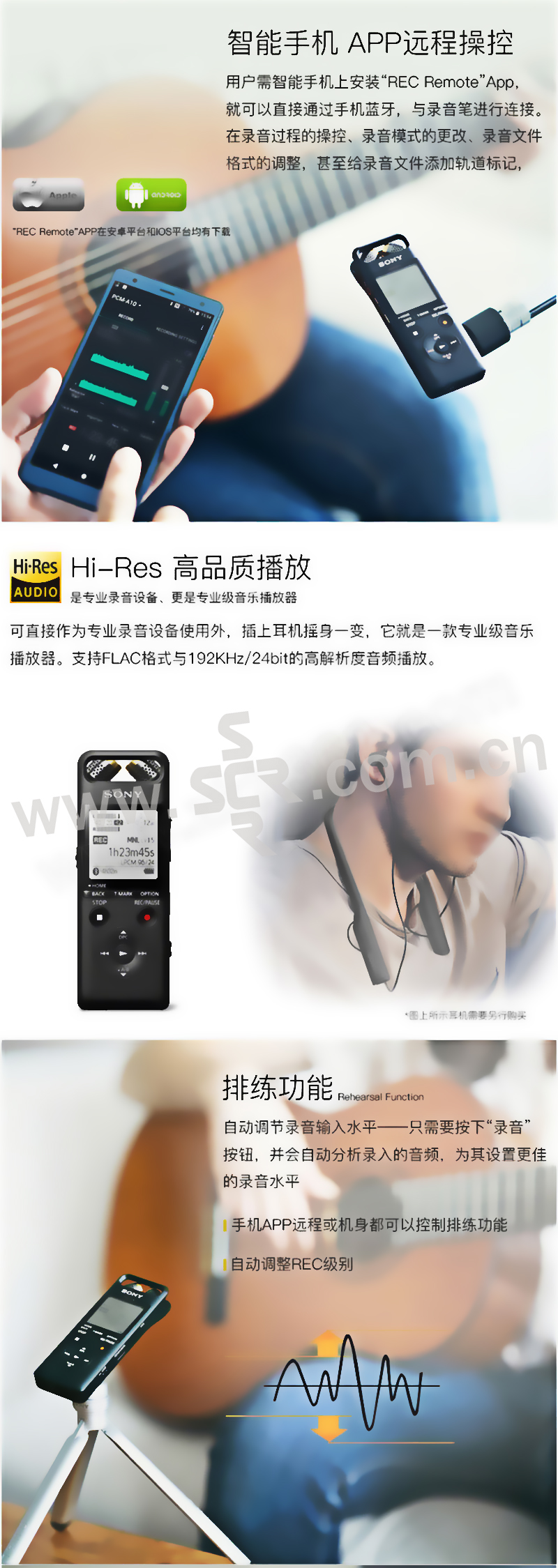 ·PCM线性录音、智能降噪、无损音乐播放,手机APP远程操控