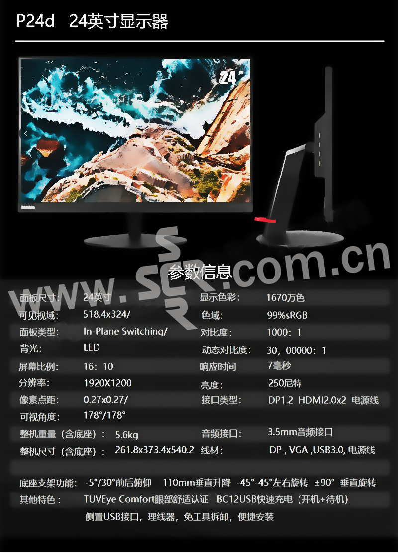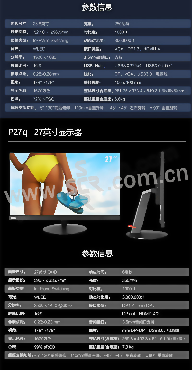 THINKVISION/联想 显示器 P27Q 27" QHD 2560×1440 DP/miniDP/HDMI 1台