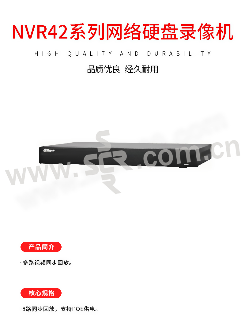 DAHUA/大华 NVR42系列网络硬盘录像机 DH-NVR4208-8P-HDS2 8路同步回放 支持PoE供电 1个