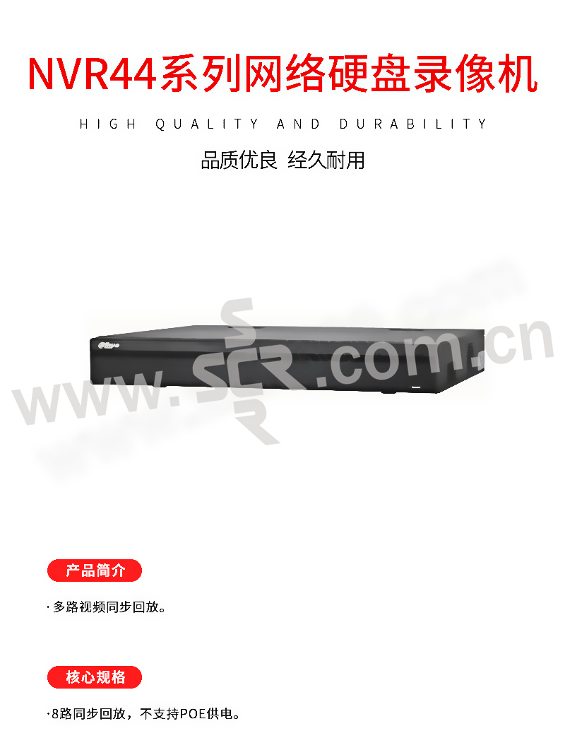 DAHUA/大华 NVR44系列网络硬盘录像机 DH-NVR4408-HDS2 8路同步回放 不支持PoE供电 1个