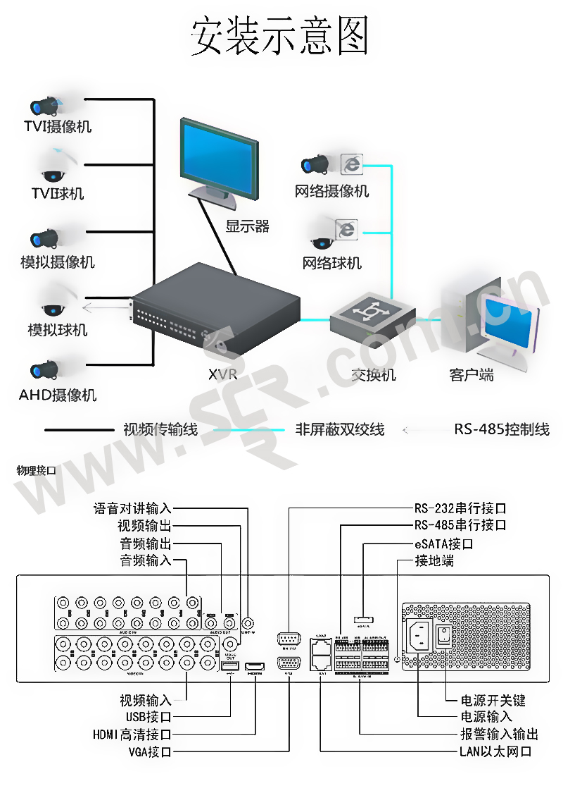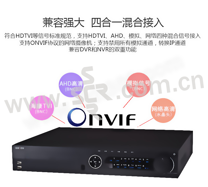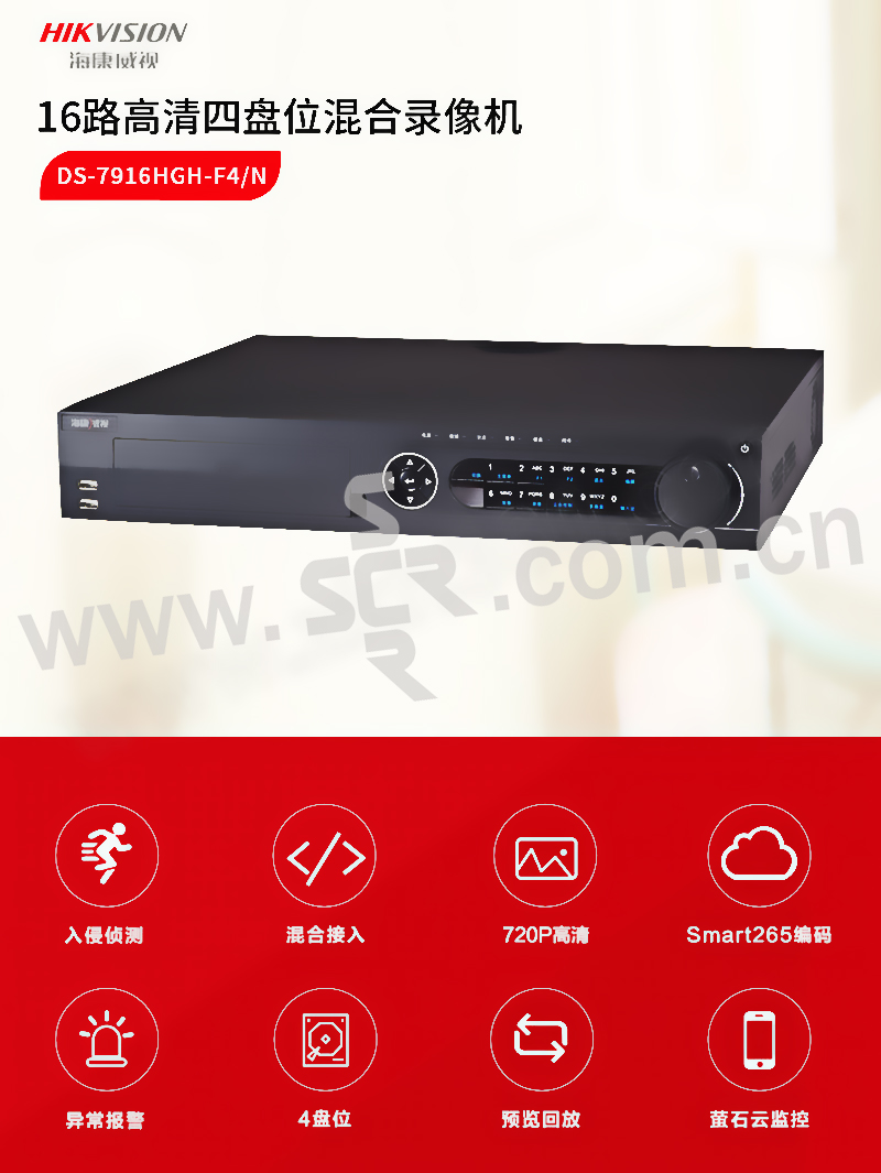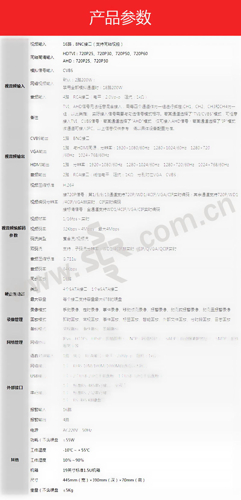 ·符合HDTVI、AHD 等信号标准规范,支持HDTVI、AHD、模拟、网络四混合信号接入。·支持禁用所有模拟通道,转换为IP 通道。·支持Smart264 编码·全路数支持高清720P 实时预览。·远距离同轴电缆传输,TVI 720P 信号最高支持1200 米可靠传输。·支持HDMI 与VGA 同源输出,HDMI 与VGA 输出分辨率最高均可达1920×1080。·支持最大16 路同步回放及多路同步倒放。·支持萤石云服务,可一键配置上网。·支持GB28181、Ehome 协议接入平台。