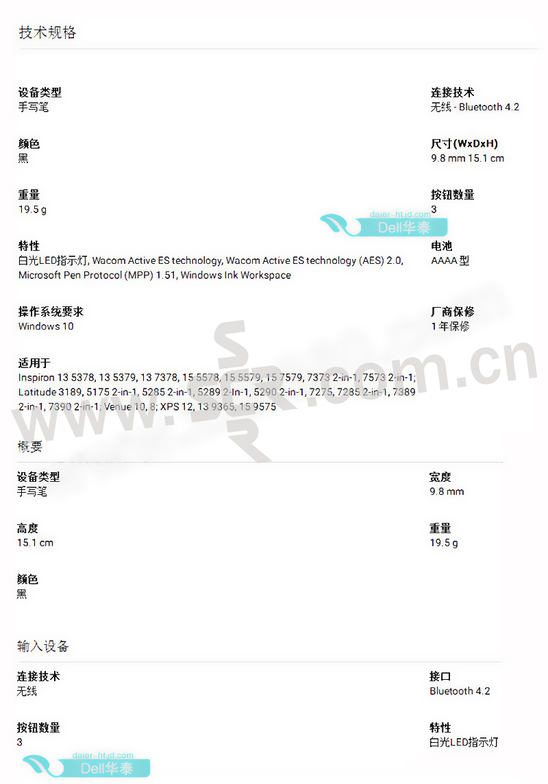 DELL/戴尔 手写笔 高级有源手写笔 1个
