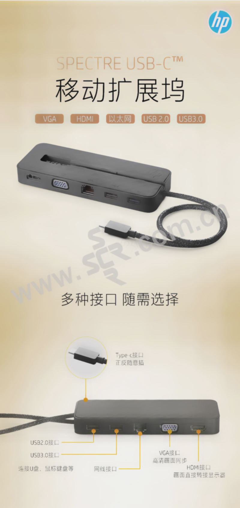HP/惠普 Spectre USB-C 旅行坞站 2SR85AA 扩展坞 1个
