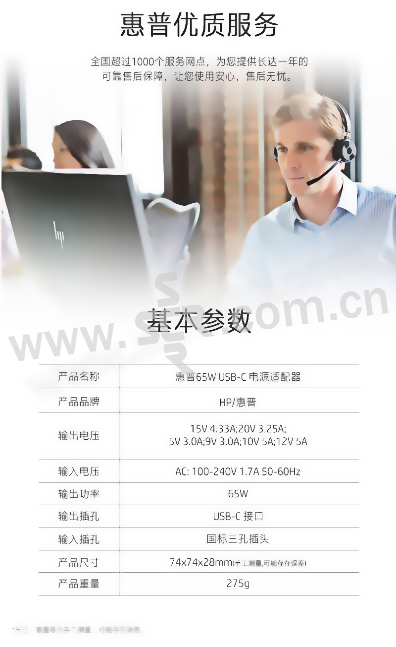 HP/惠普 65W USB-C智能电源适配器 1HE08AA 65W 1个