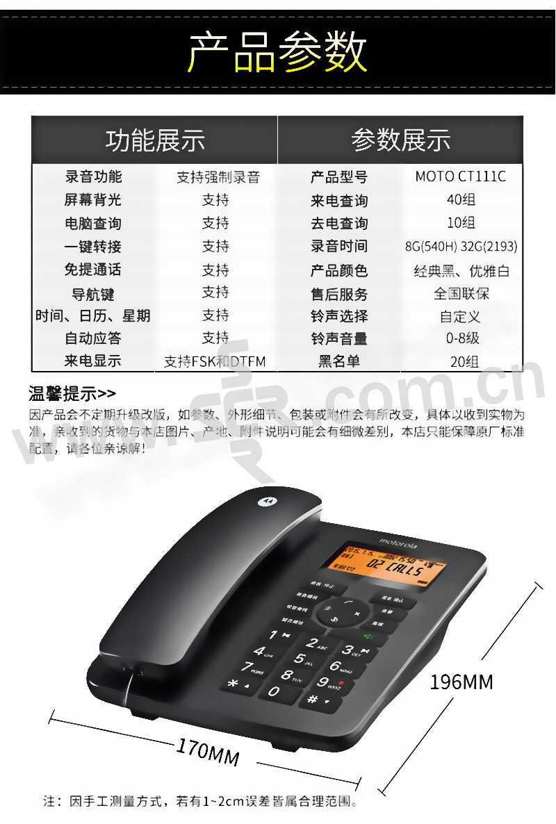 MOTOROLA/摩托罗拉 录音电话机 CT111C 白色 1台