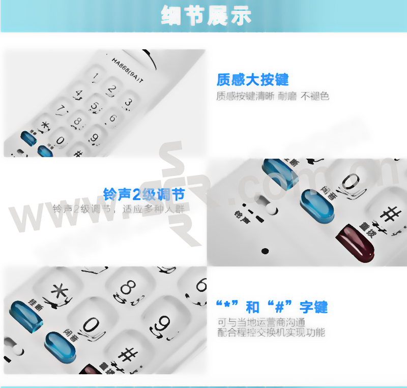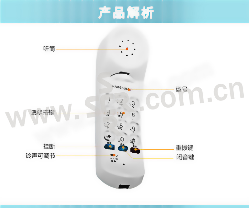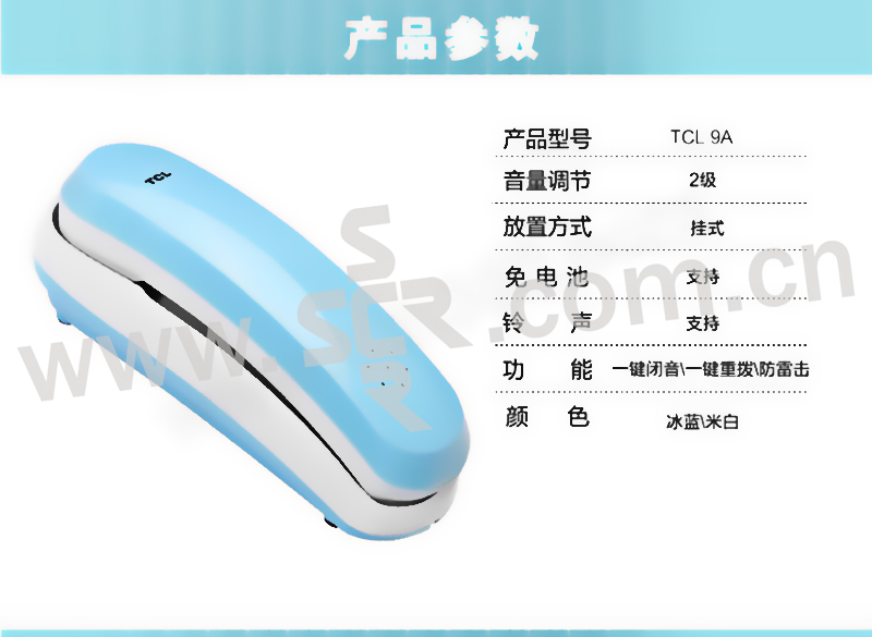 TCL 壁挂电话机 HA868(9A) 冰蓝色 1个