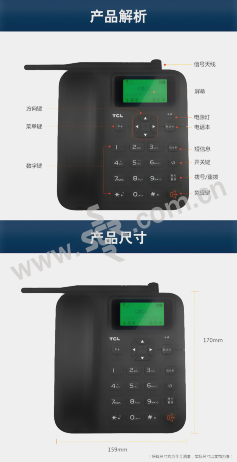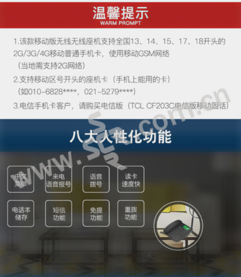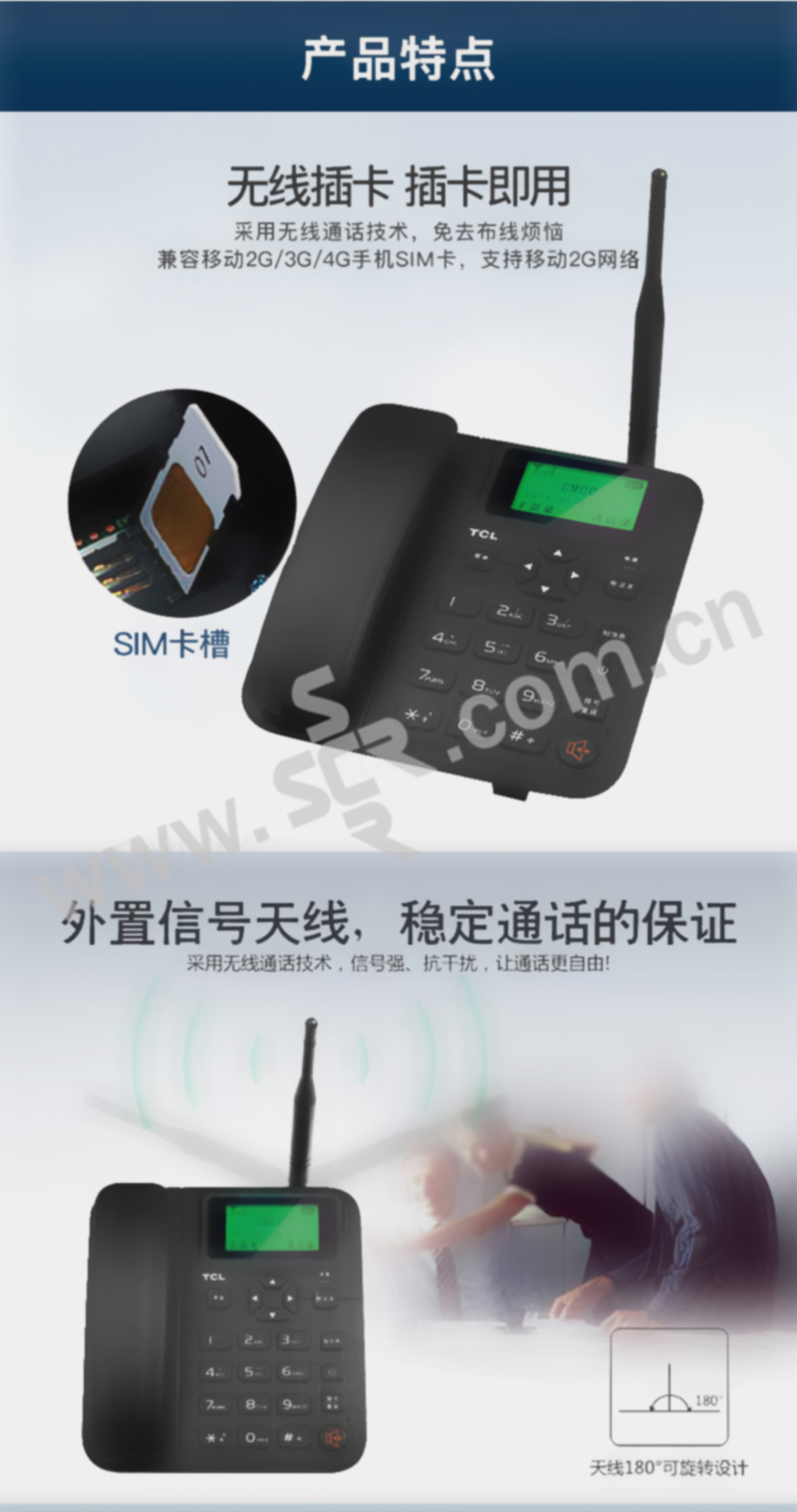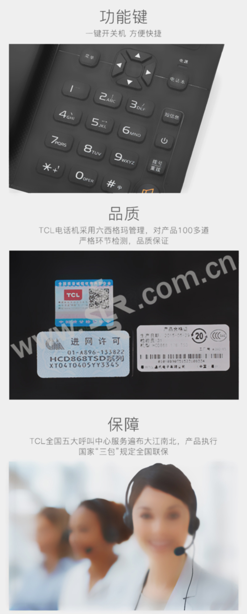 TCL 插卡电话机 GF100 移动2G 黑色 1个