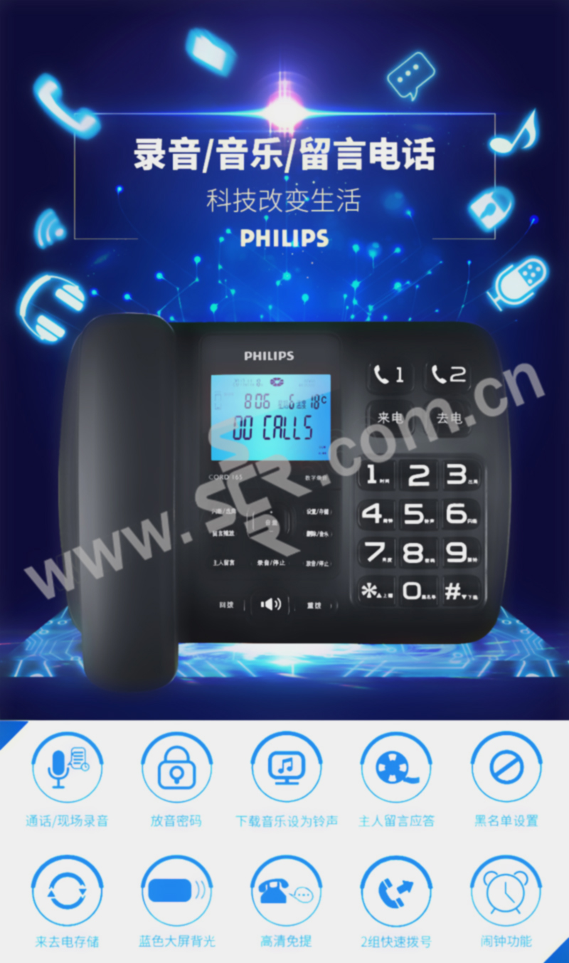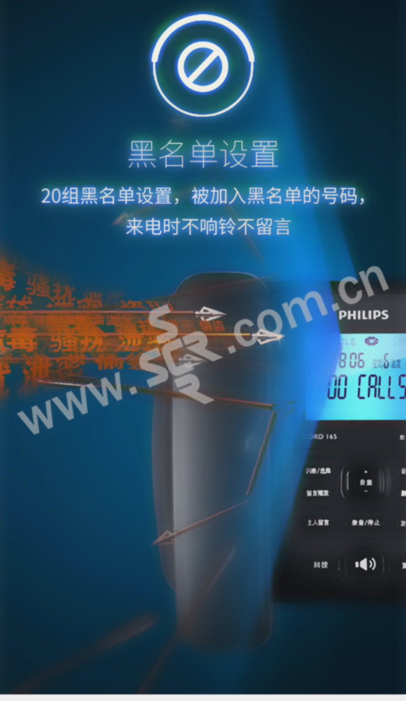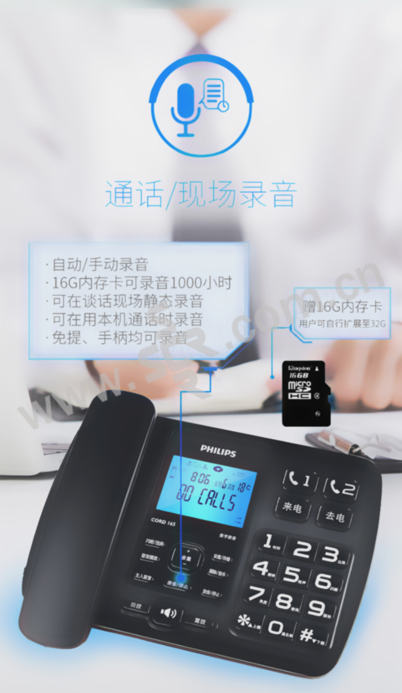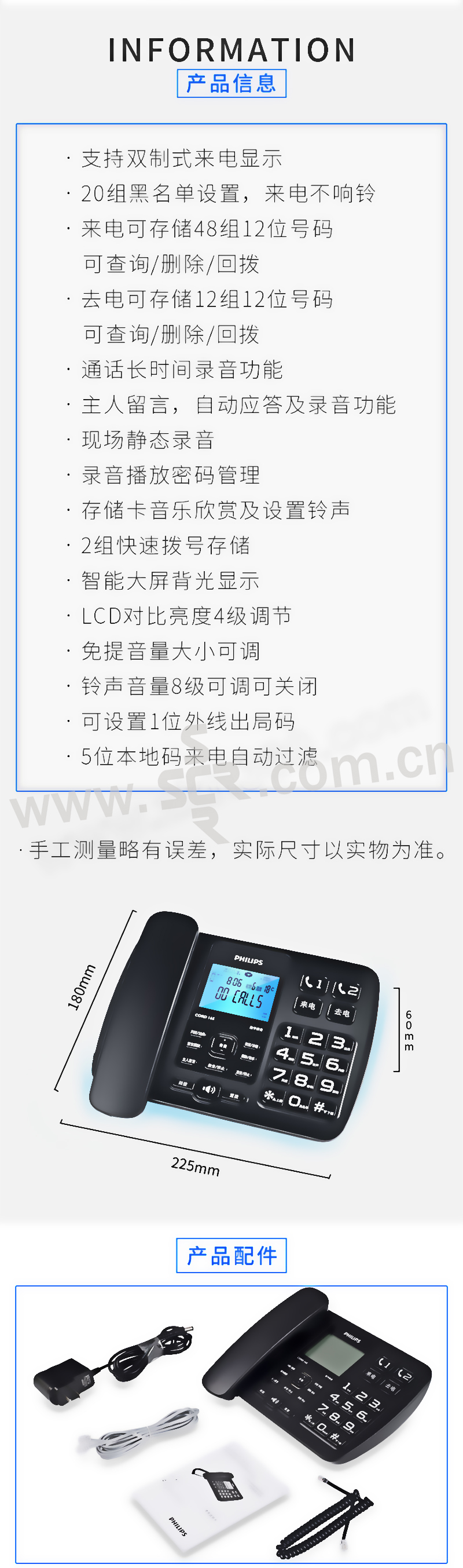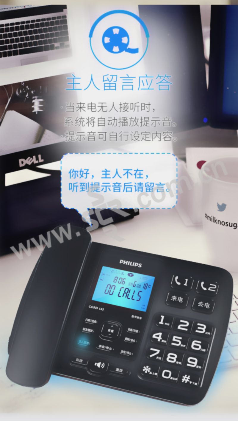 PHILIPS/飞利浦 电话机 CORD165 黑色 1个