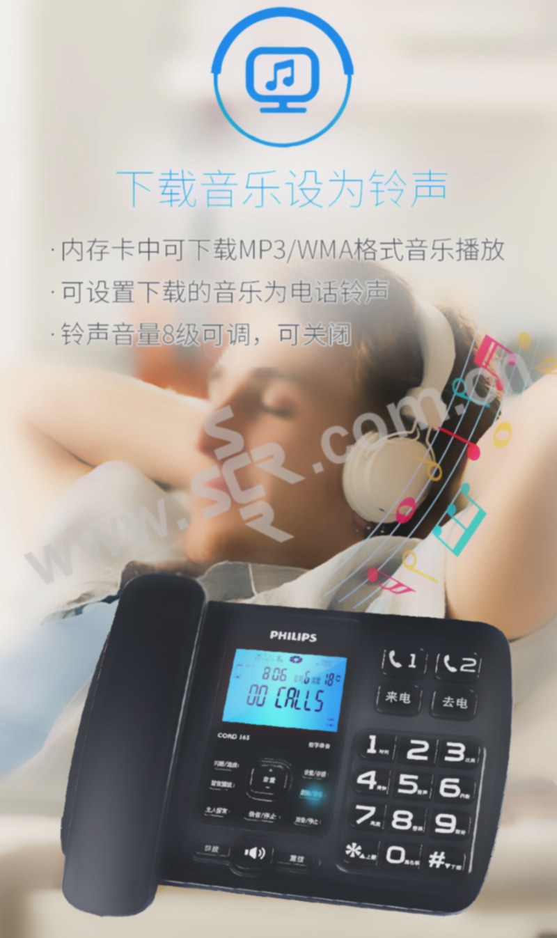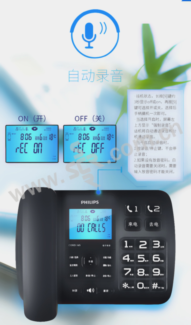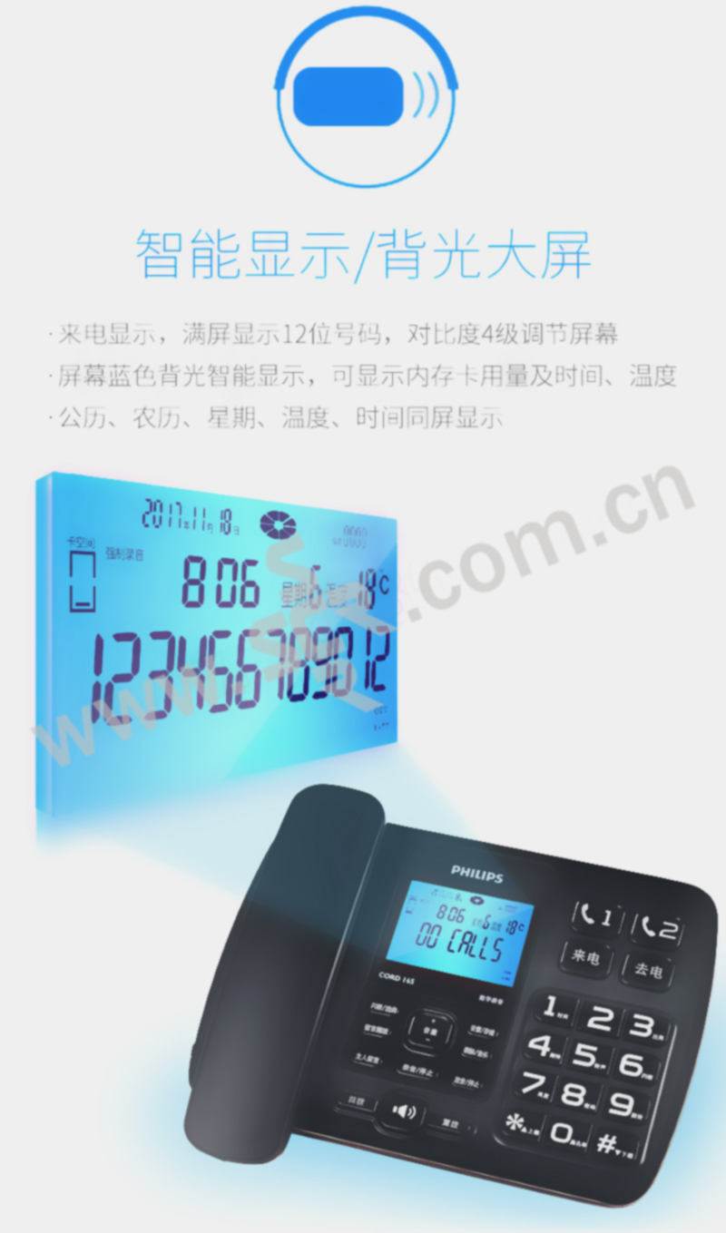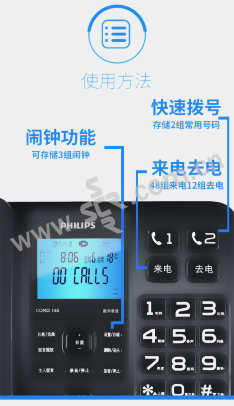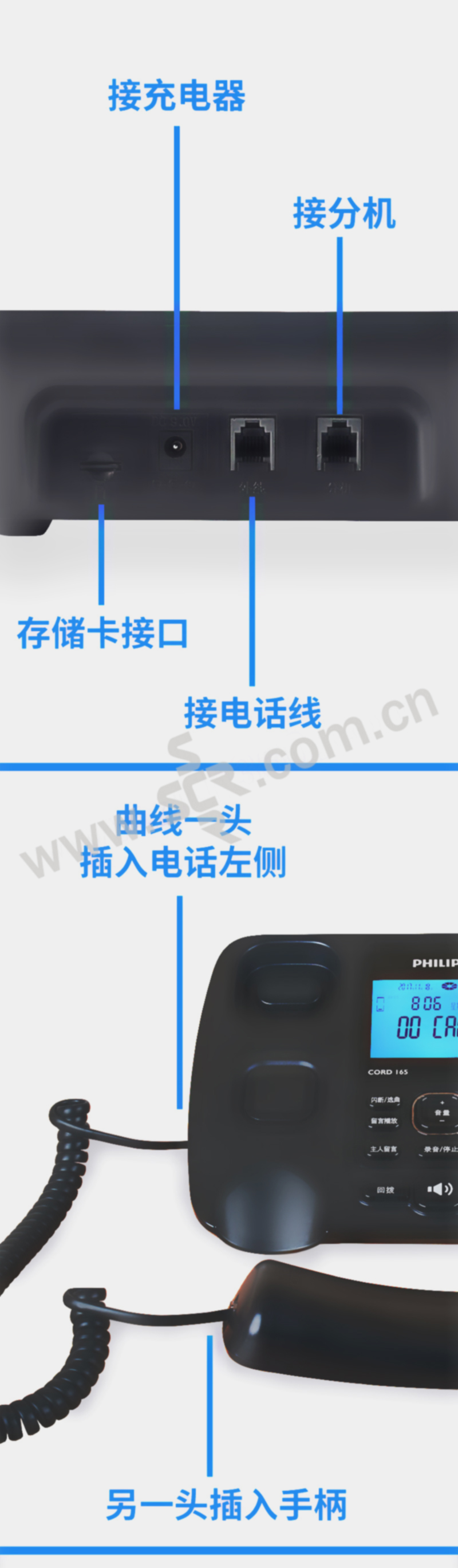 PHILIPS/飞利浦 电话机 CORD165 黑色 1个