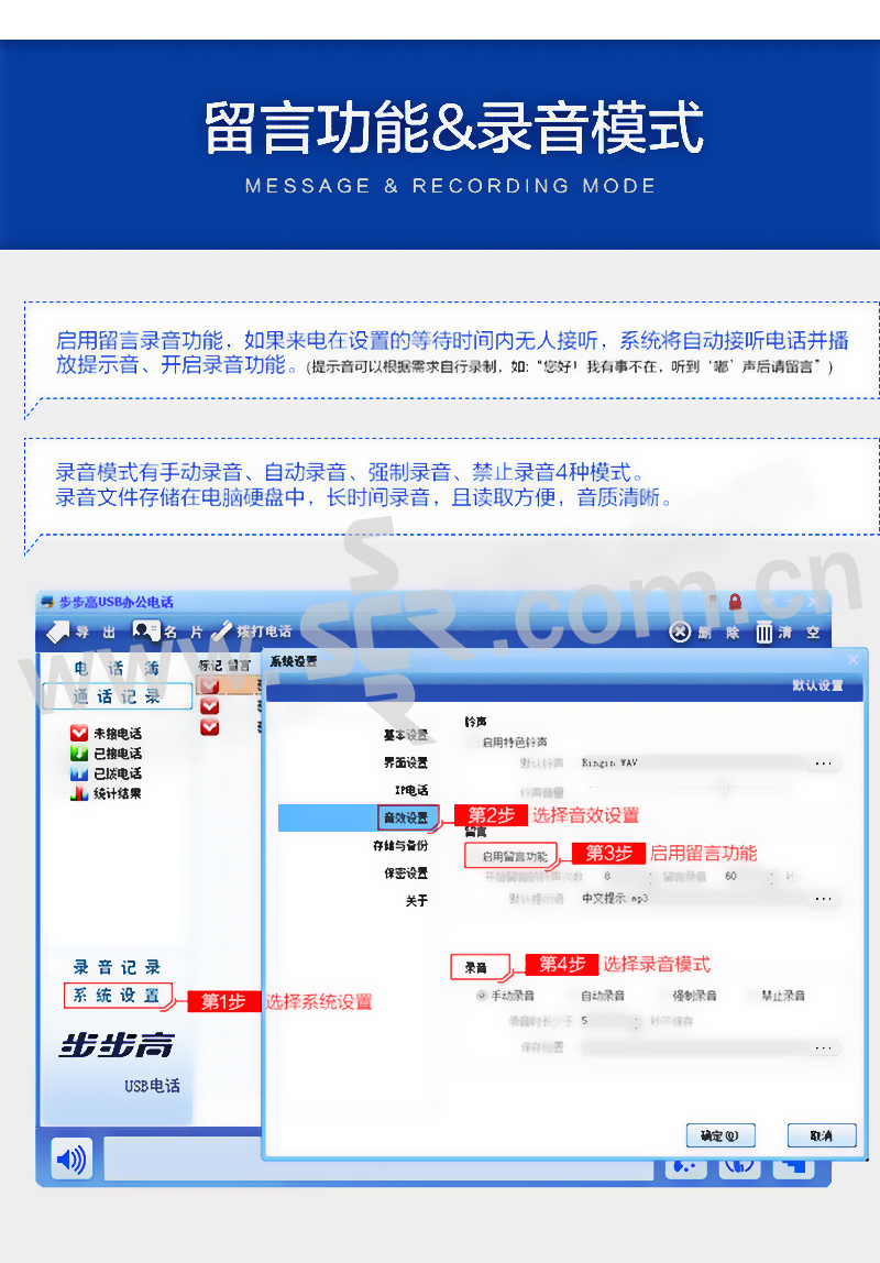 ·清晰通话音质,支持录音和来电显示