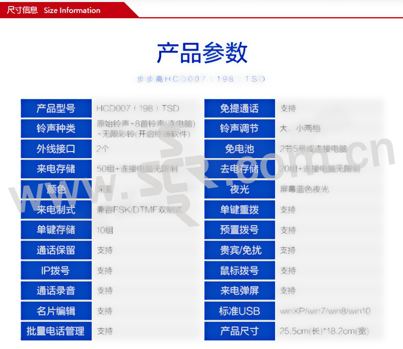 BBK/步步高 有绳电话机 HCD007(198)TSD 深蓝 硬塑 1台