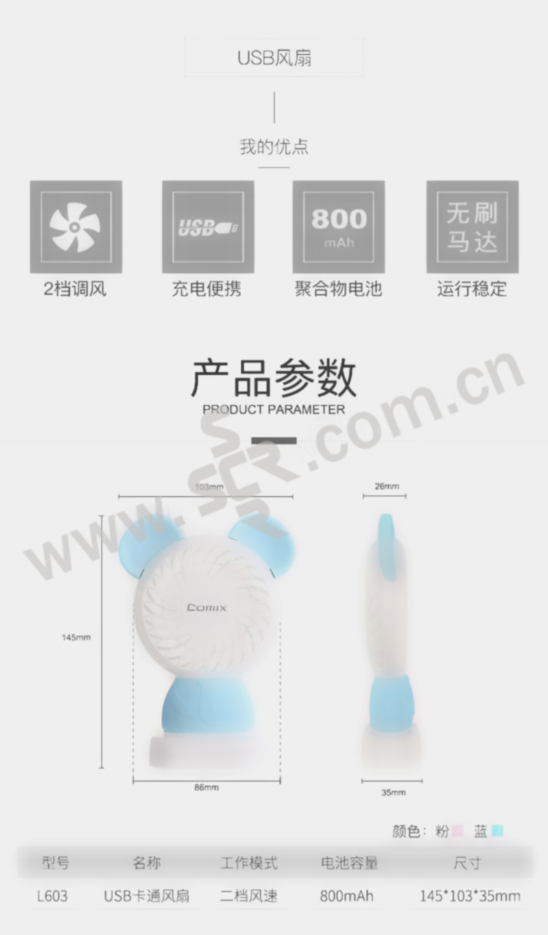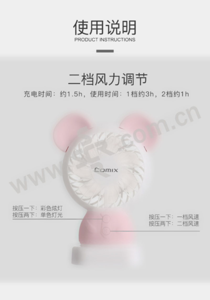 ·2档调风,充电便捷,聚合物电池,运行稳定