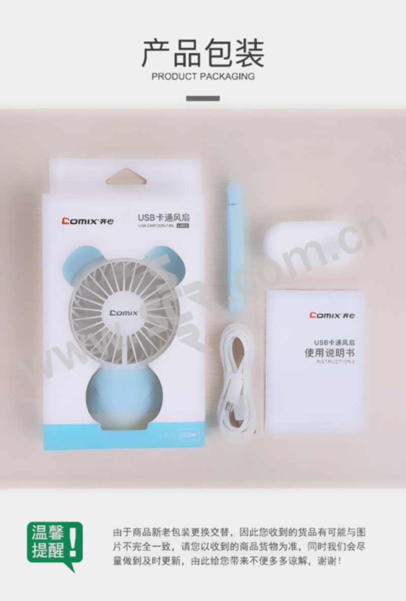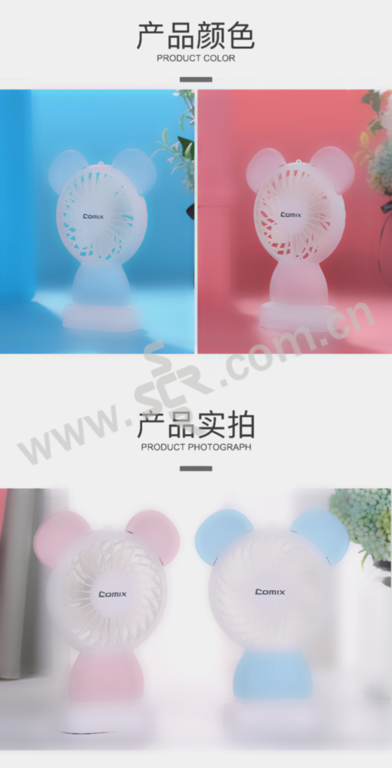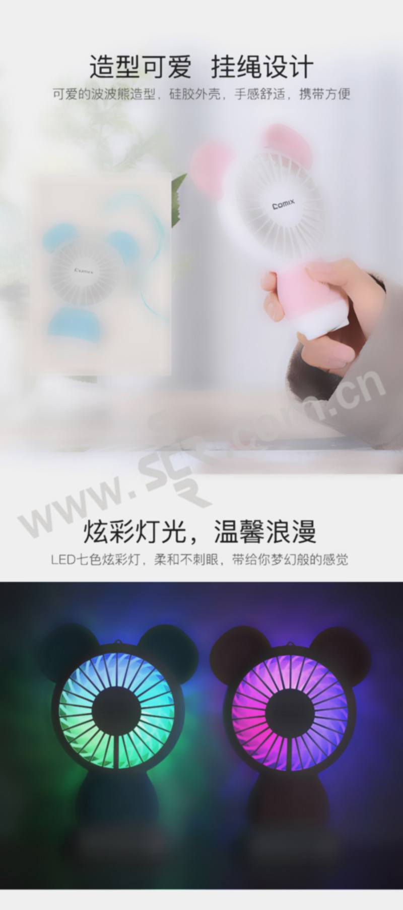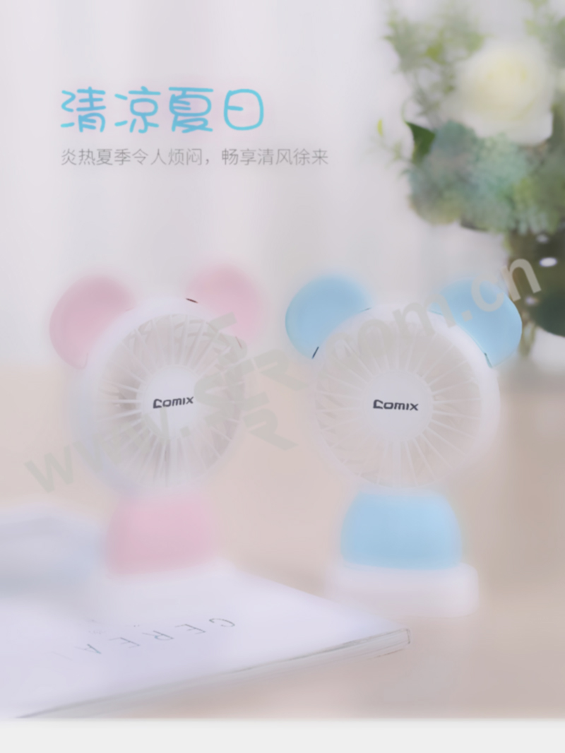 COMIX/齐心 USB卡通充电风扇 L603 炫彩灯光可调档位 粉色 尺寸145×103×35mm 1个