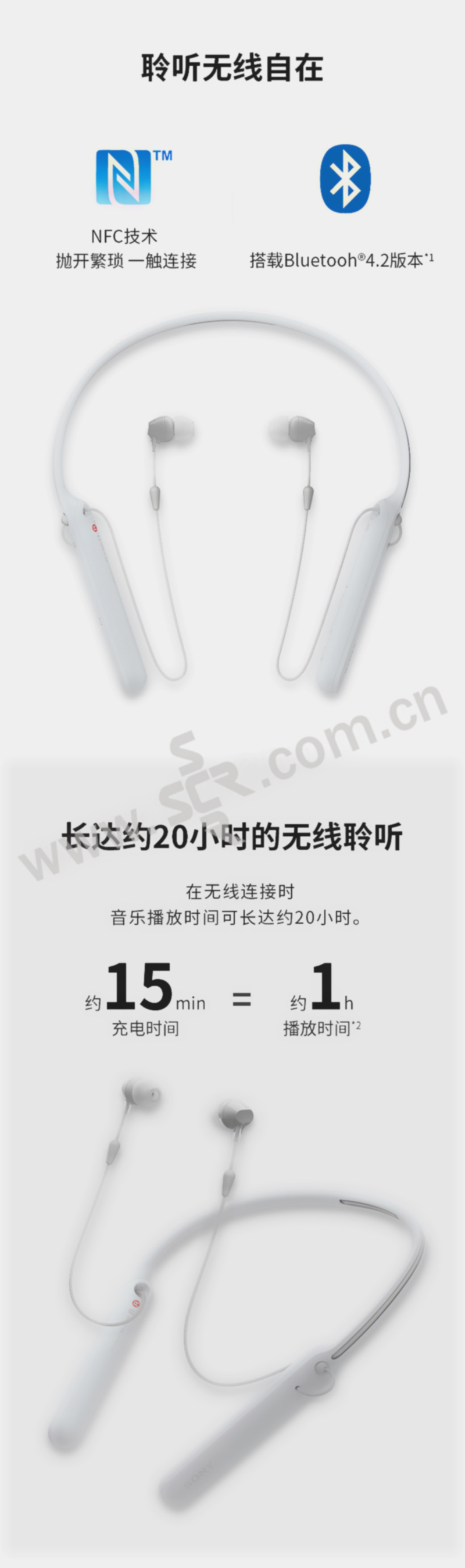 SONY/索尼 无线蓝牙立体声耳机 WI-C400 白色 1副