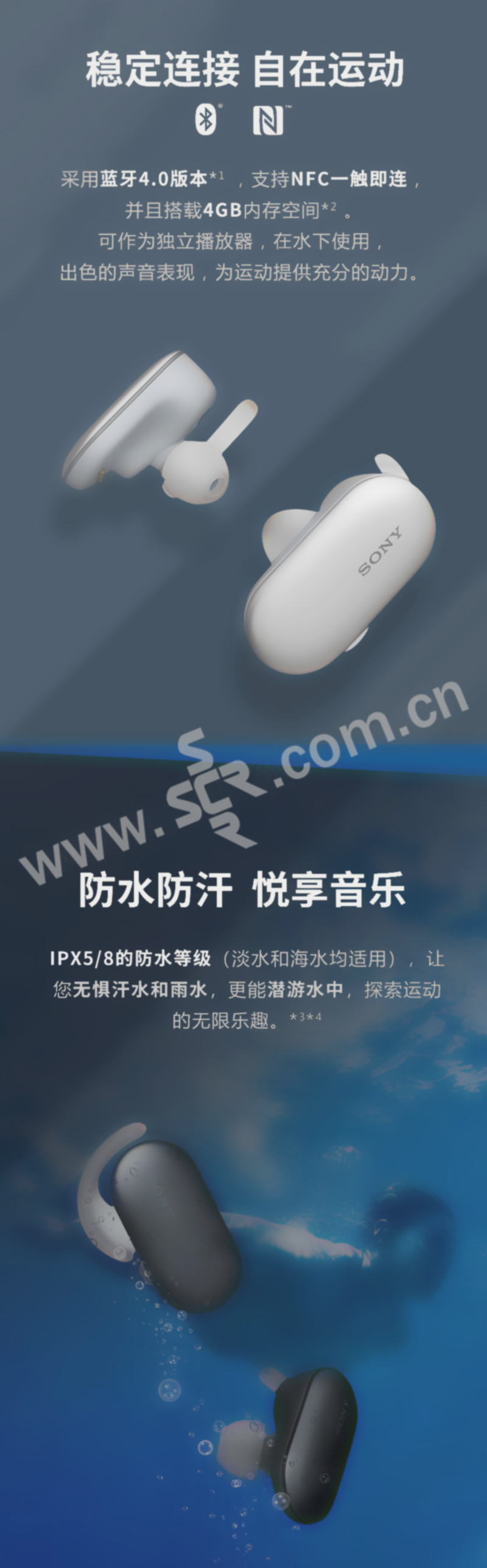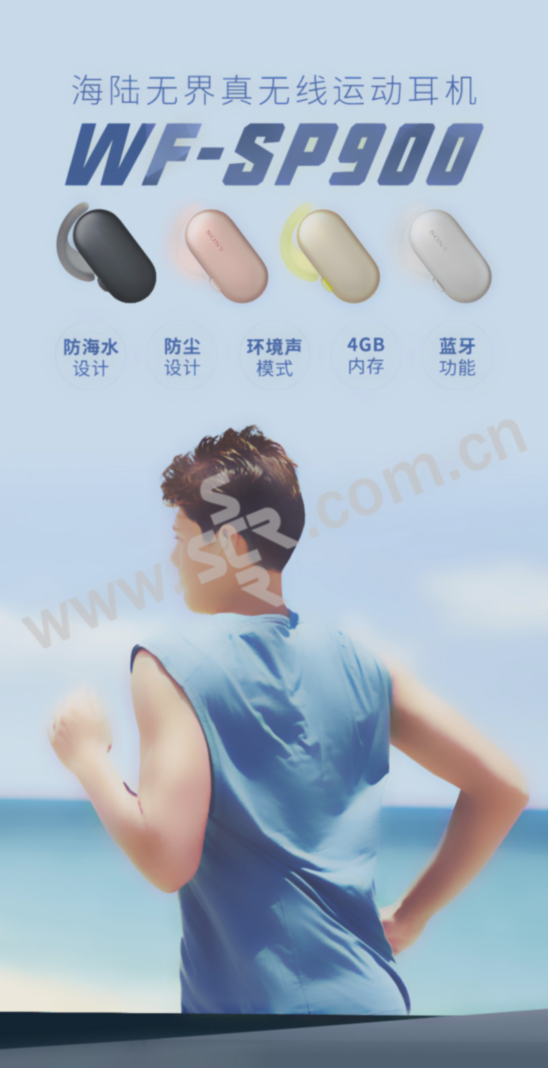 SONY/索尼 真无线防水运动耳机 WF-SP900 IPX5/8防水等级 触控面板 4GB内存 黄色 1副