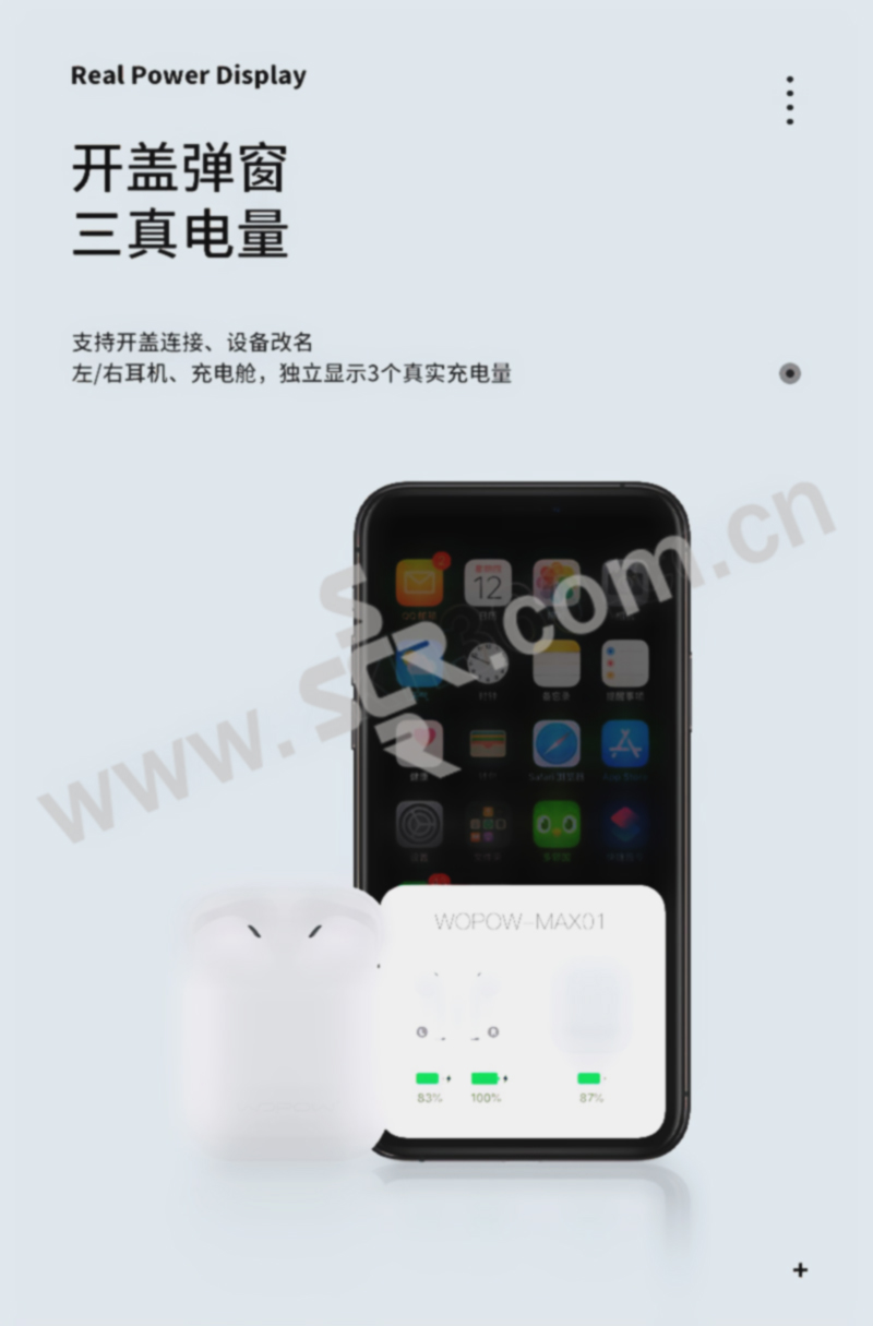 ·光感入耳,智能播放,开盖弹窗,三真电量