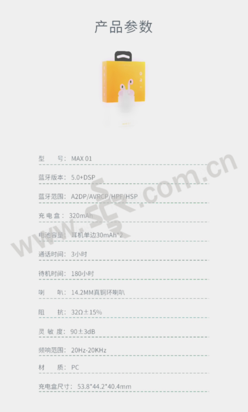 WOPOW/沃品 2代升级版TWS蓝牙耳机 MAX01 320mAh 1个