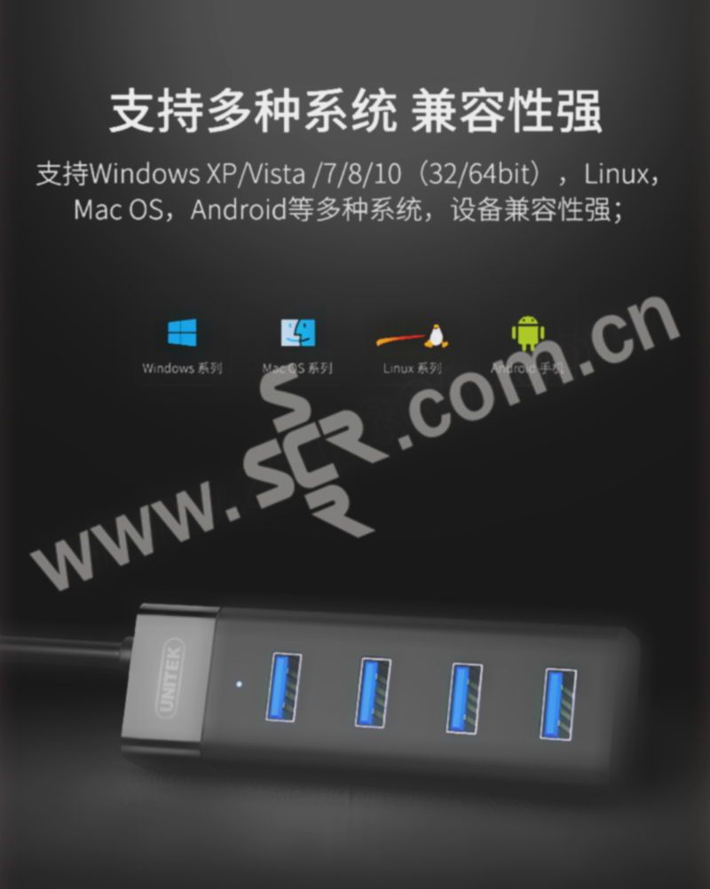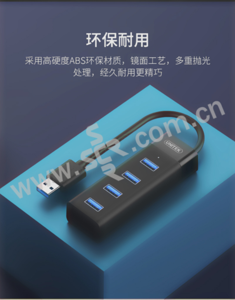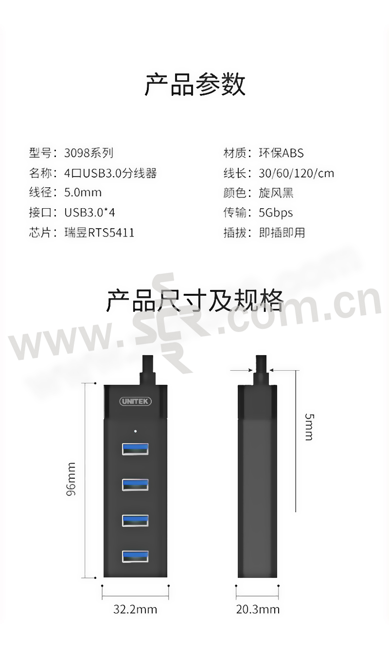 UNITEK/优越者 USB分线器 Y-3098CBK 4口 1.2m USB3.0 黑色 1个