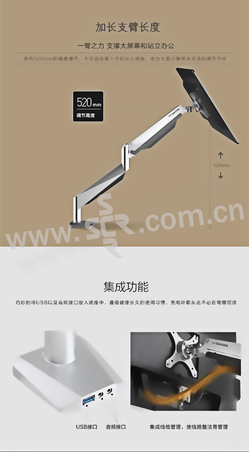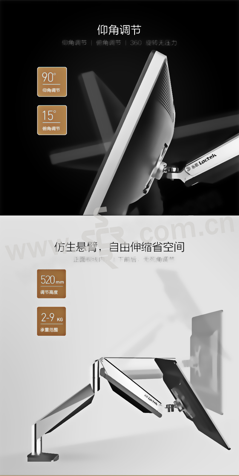 LOCTEK/乐歌 电脑显示器支架 D7A 单屏 17~32寸显示器 最高520mm 最长550mm 2~9kg 1个