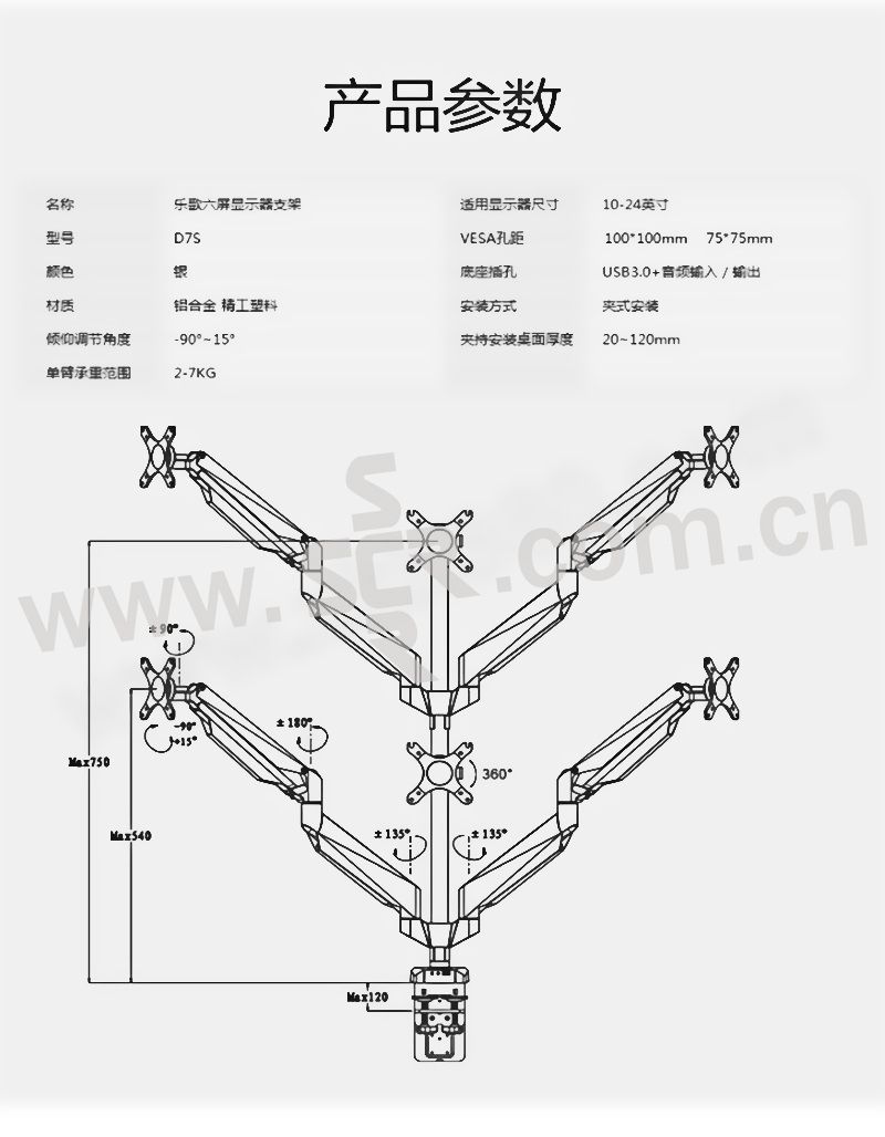 LOCTEK/乐歌 电脑显示器支架 D7S 六屏 适用尺寸:17~27英寸 1个