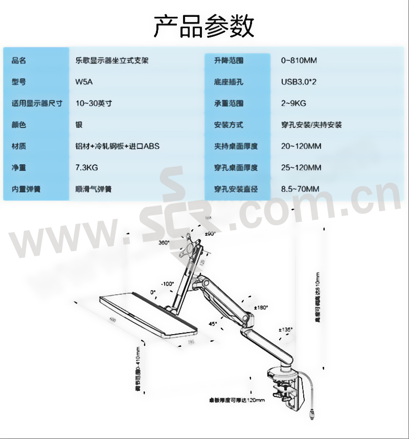 LOCTEK/乐歌 坐站交替工作站 W5A 黑色 1个