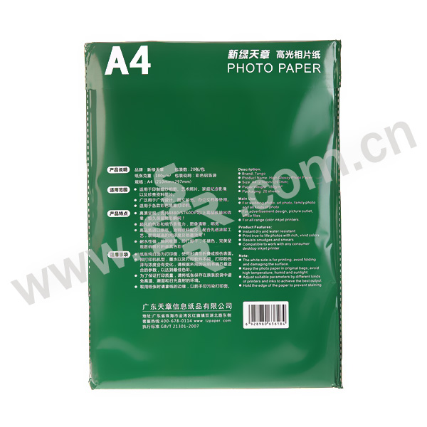 TANGO/天章 高光照片纸 P3618 A4 180g 20张 1包