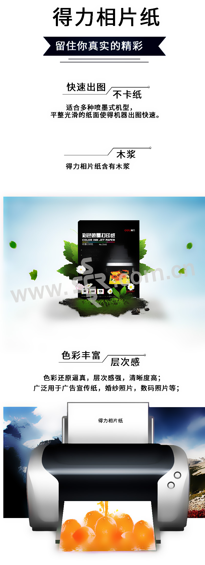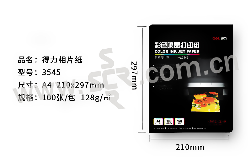 DELI/得力 喷墨打印纸 3545 A4 210×297mm 100张装 1包