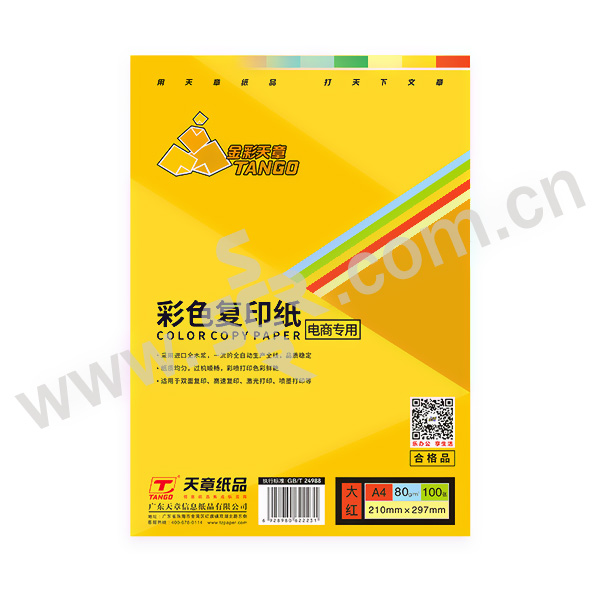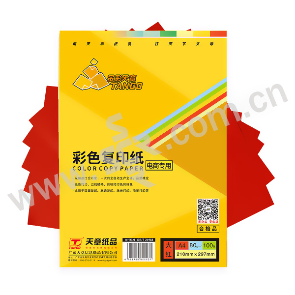 TANGO/天章 金彩彩色复印纸 P2223 大红色 A4 80g 100张× 25包 1箱