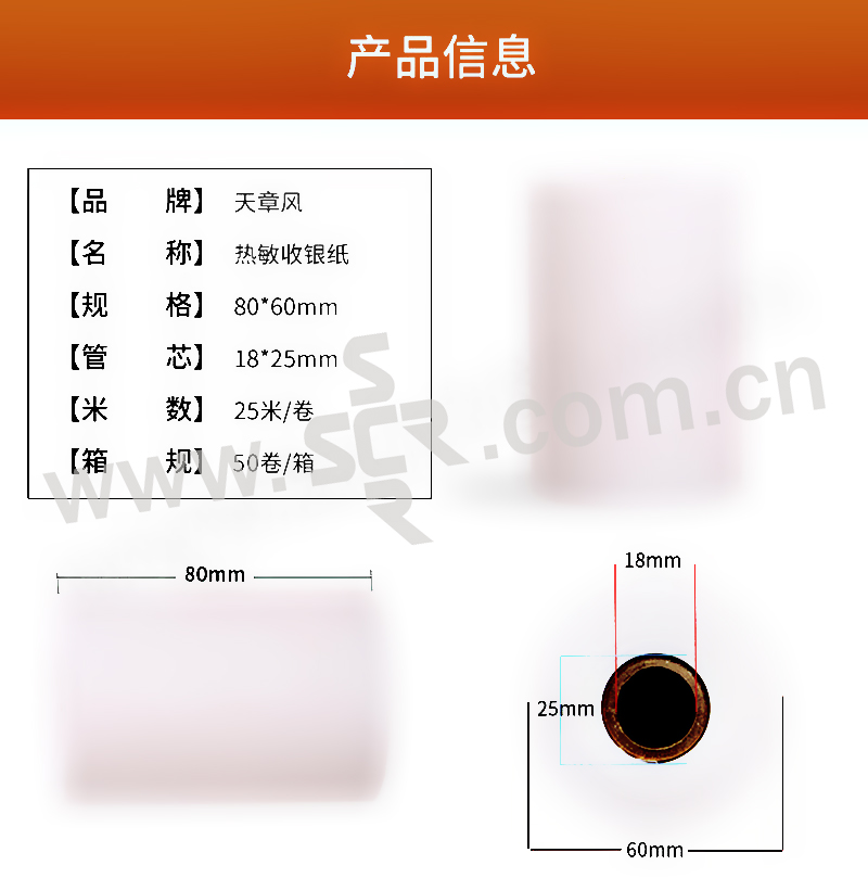 TANGO/天章 热敏收银纸 P3420 80mm×60mm 50卷 1箱