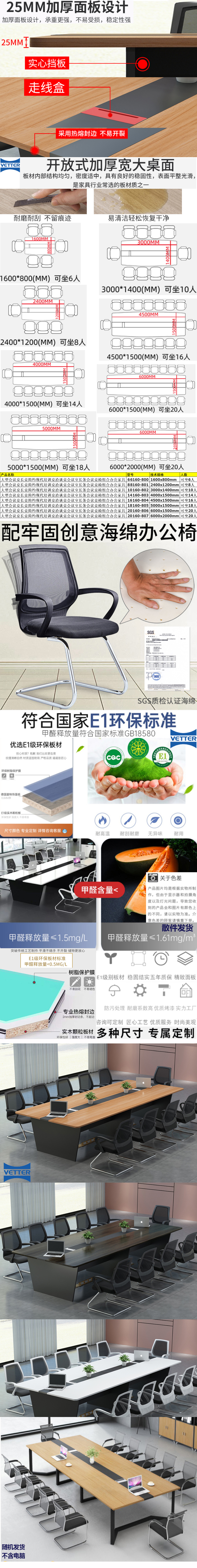 大型会议桌长桌简约现代培训桌洽谈桌会议室长条会议桌椅组合办公家具