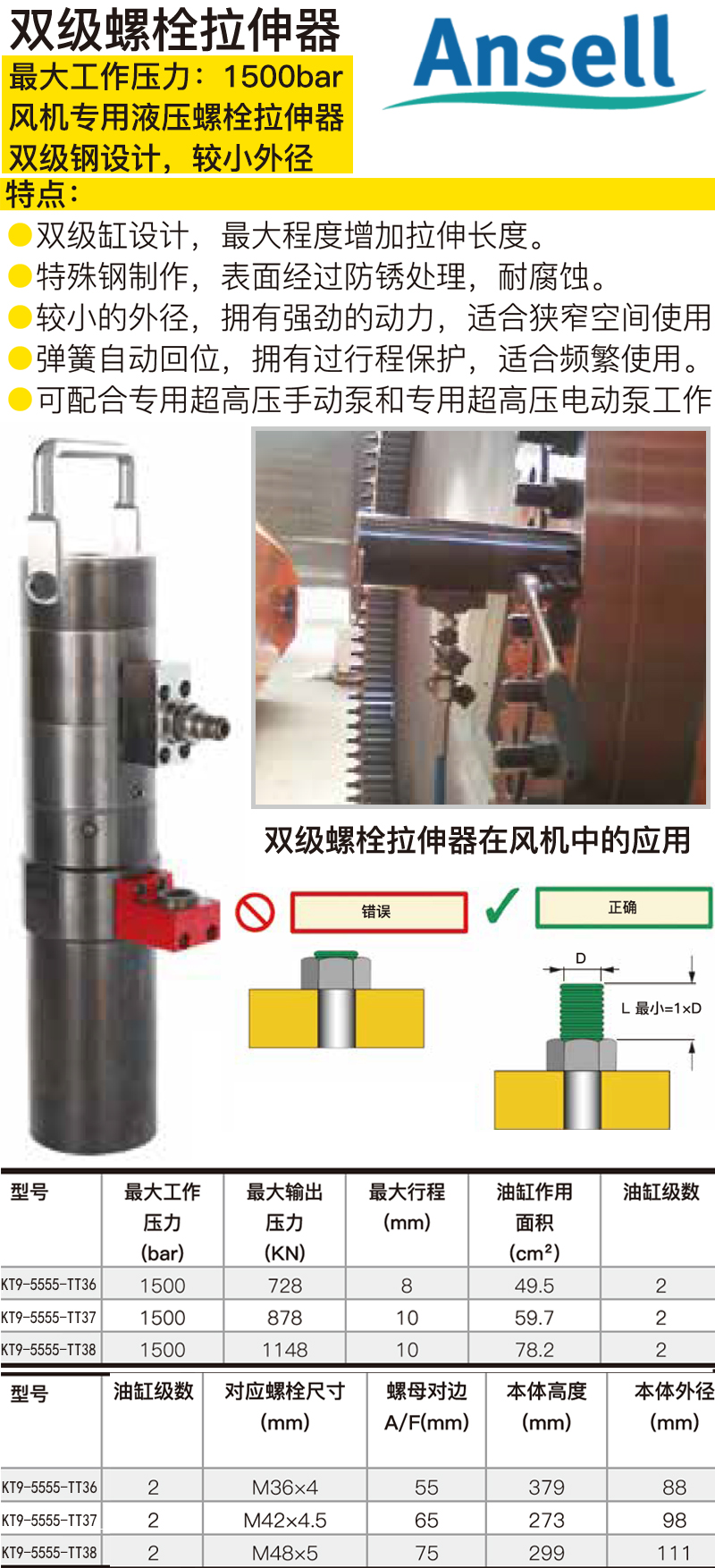 工业双级螺栓拉升器拉伸器