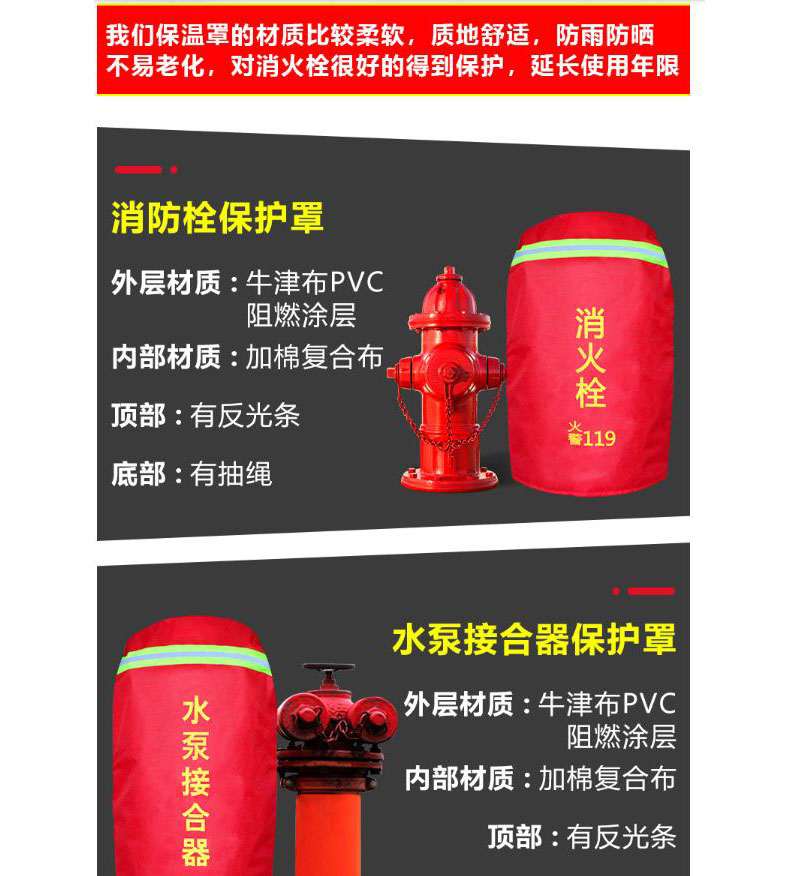 分类: 消火栓保护罩(单层) 消火栓保护罩(加棉) 消火栓保护罩加棉(定制加大款) 水泵接合器(单层) 水泵接合器(加棉) 消火栓保温罩聚氨酯发物流自提 消防水炮保温罩(需定制尺寸)