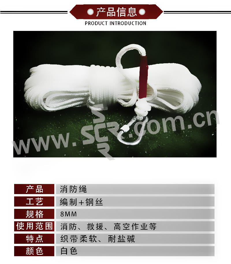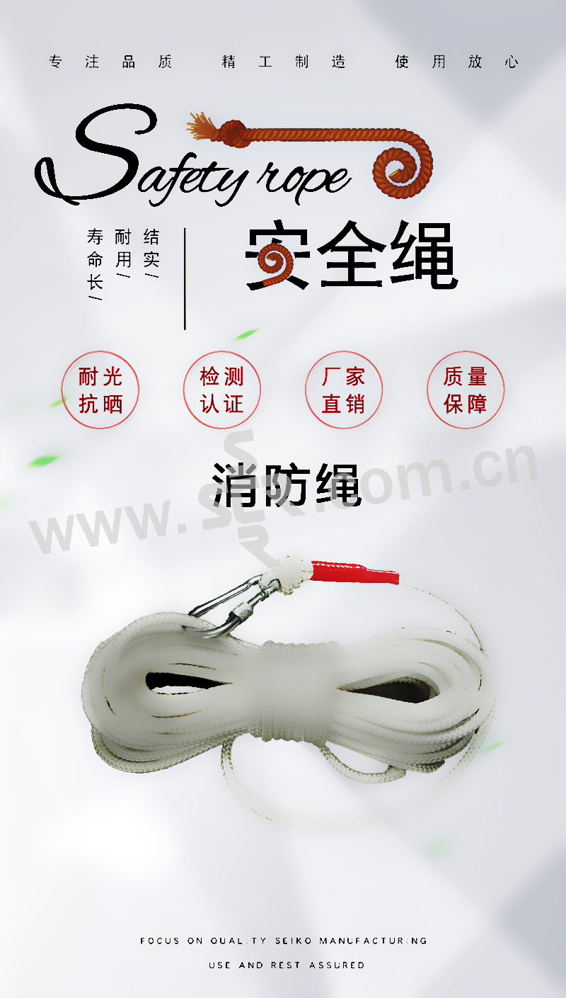 AHSW/安惠绳网 消防绳带双头小钩 XFS8-20 直径8mm 长20m 颜色随机 1根
