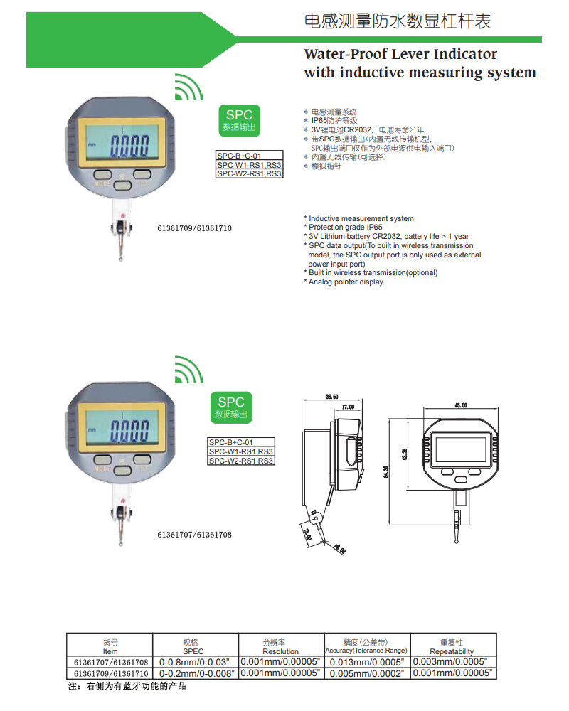 防水防尘蓝牙数显杠杆百分表