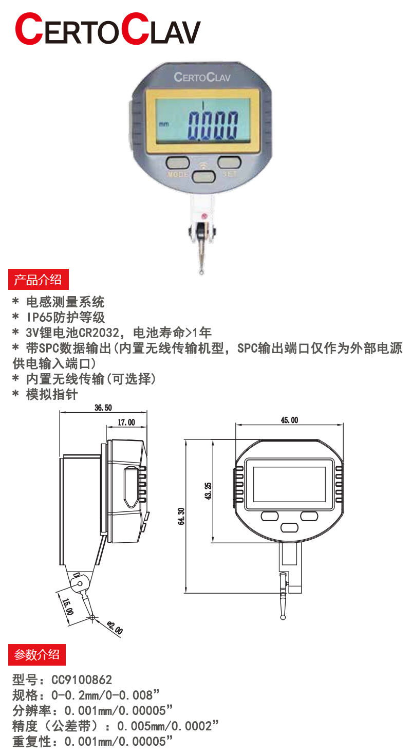高精度电感测量防水防尘数显杠杆千分表