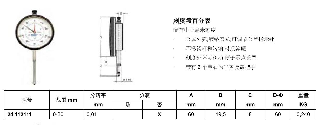 ·金属外壳·镀铭磨光·可调节公差指示针 ·不锈钢杆和转轴·材质淬硬 ·刻度外环可移动·便于零点设置